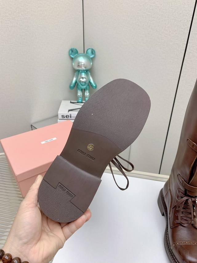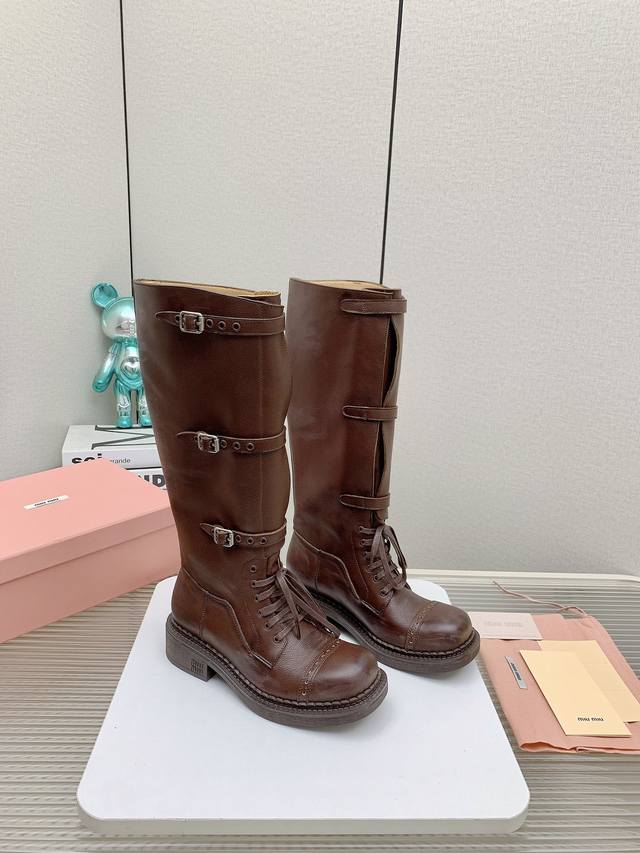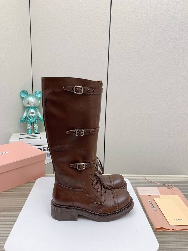 代购级别断货王爆款 Miumiu谬谬秋冬机车造型长靴松弛感限量走秀款一双封神复古做旧拉丝工艺复古做旧