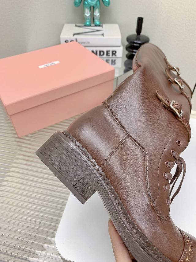 缪缪秋冬秀款 短靴新品经典机车靴造型,帅气摩登