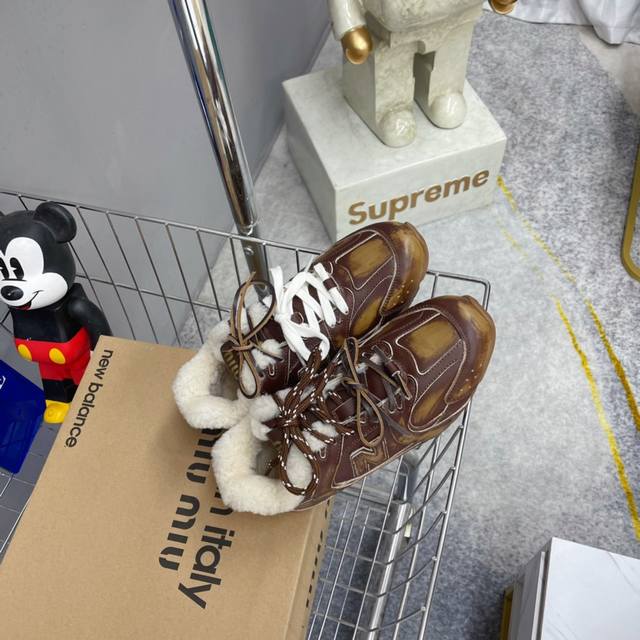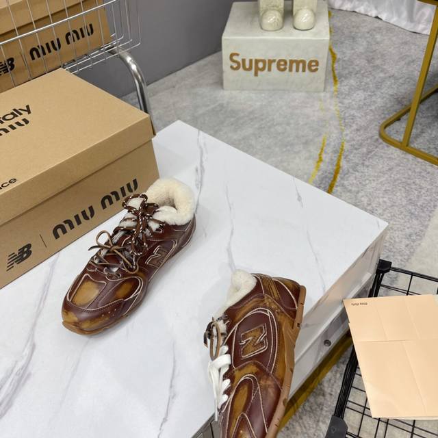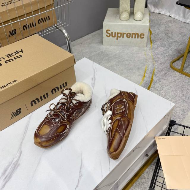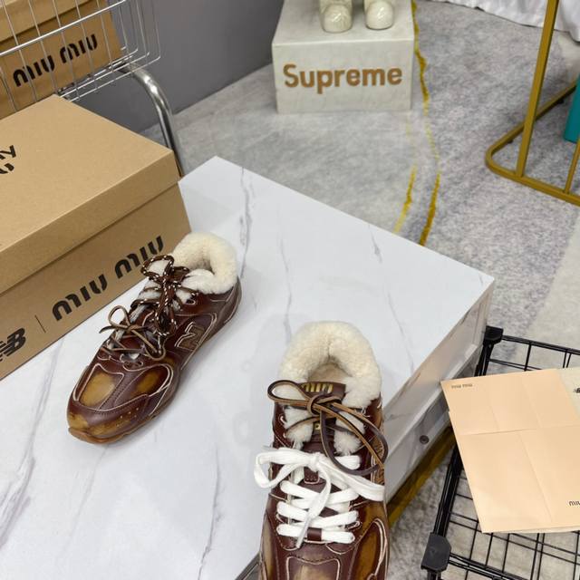 出厂 代购级别独家首发miumiu缪缪棉鞋毛毛鞋 秋冬新款英伦风系带乐福鞋miumiu秀场适当独一无二的擦色工艺工艺来自miu Miu系列的细节特写 新季的潮流要素一