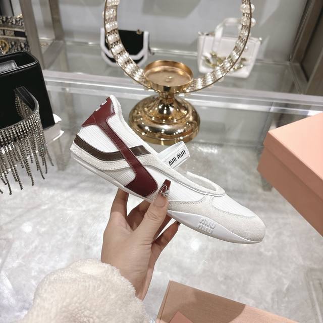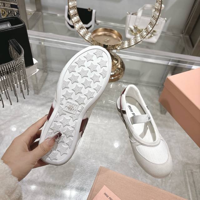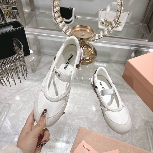 出厂 代购级别独家首发miumiu缪缪透气网单鞋2025春夏新款英伦风系带miumiu秀场工艺来自miu Miu系列的细节特写 新季多色 拼色拼接潮流要素一