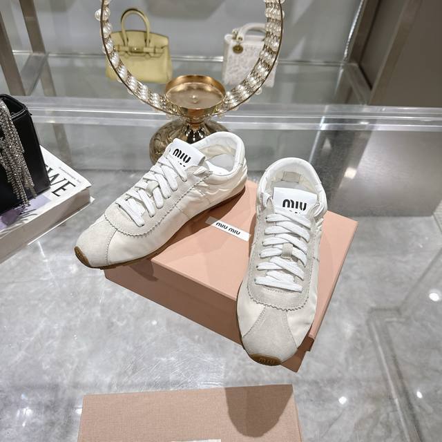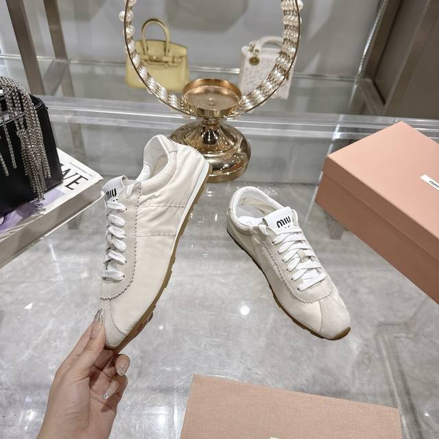 Miumiu 缪缪 25Ss 春夏新款 饼干鞋 阿甘鞋休闲运动鞋Miumiu最新爆款玛丽珍魔术贴单鞋前卫大胆的设计,Miu Miu风格融于此款厚底帆布运动鞋的简约线条,别致徽标饰于鞋舌与背面,点缀复古设计,平添标志性元素!厚底设计定义前卫的现代风格