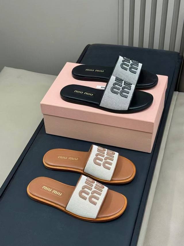Miu缪缪2025升级工艺打造精品,经典时尚款1:1开模秒杀市场一切版本欧美名媛明星网红的大爱款时尚百搭潮流拖鞋♀