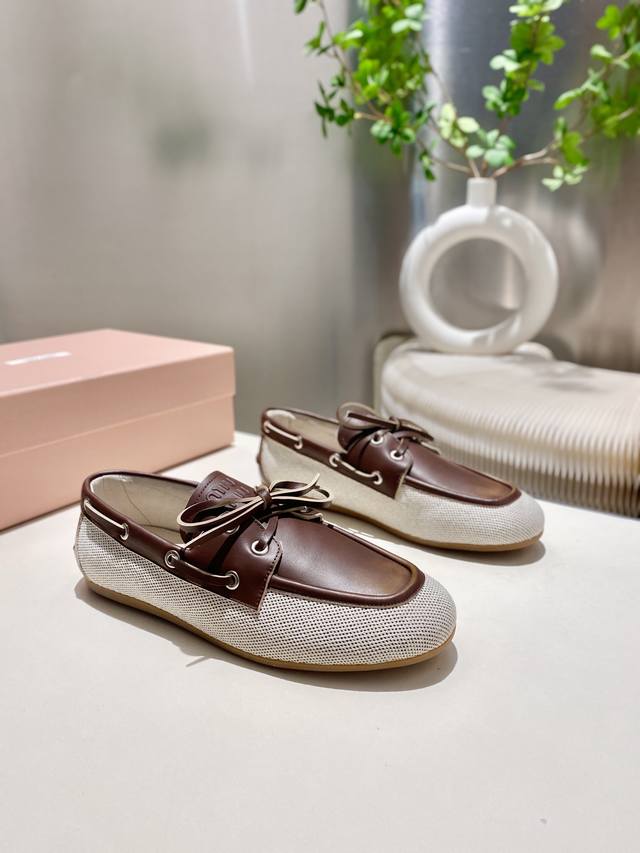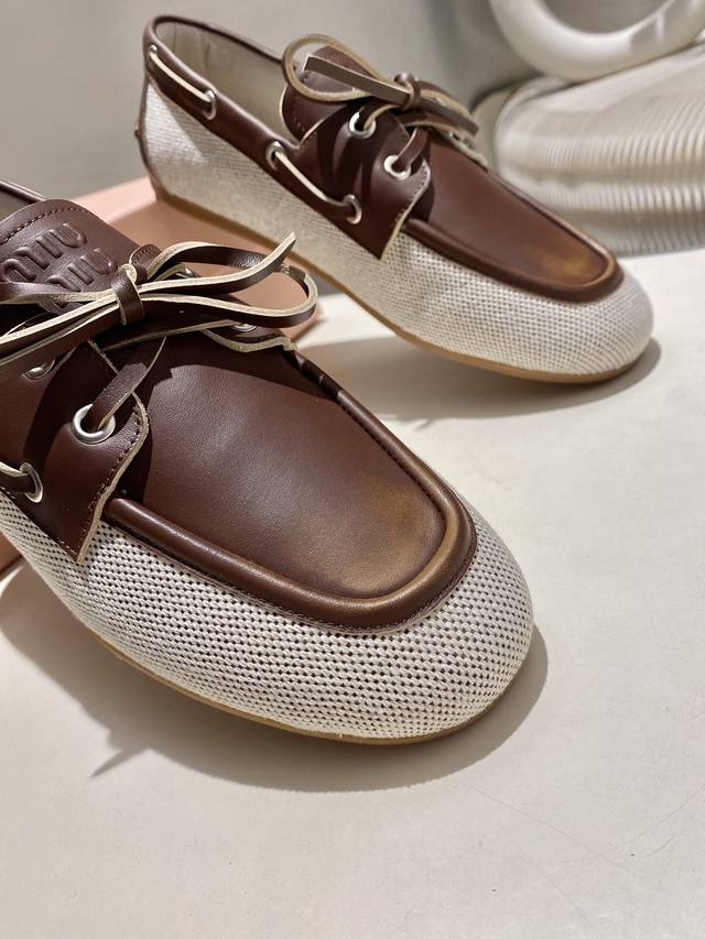 / 出厂 缪缪 2025擦色系带鸡眼平底豆豆鞋 走秀新款 .复古小皮鞋乐福鞋 豆豆鞋 复古时尚 简约高级 随意搭配 上脚非常舒适,年度必入款!超级重工 每一双都是独