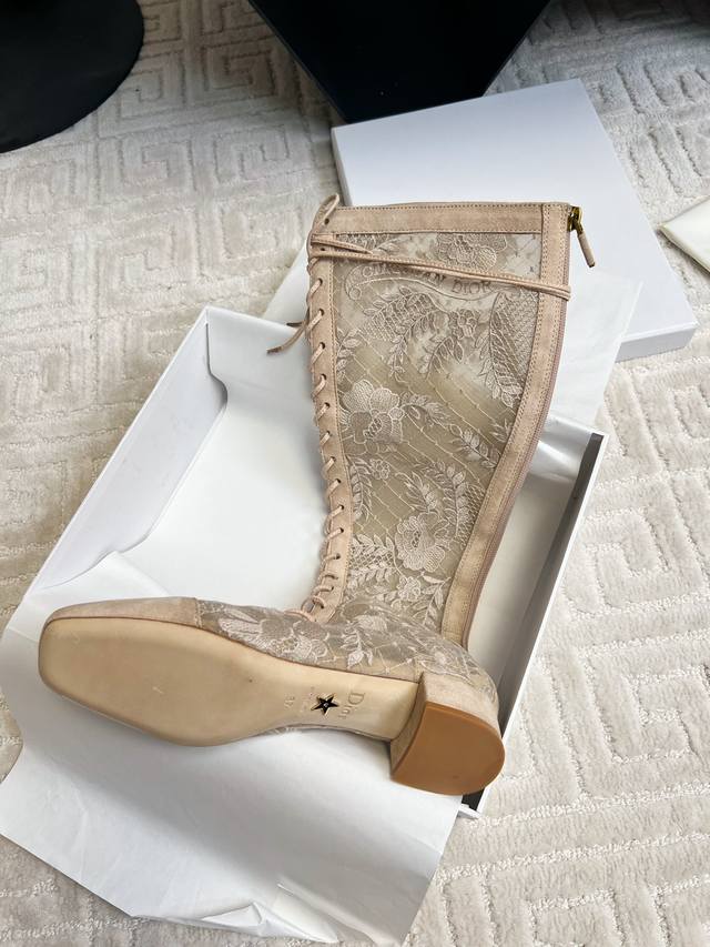 出厂 顶级品质dior Ss23 New Arrival~Cd 春夏蕾丝刺绣网靴新品 玫瑰花蕾丝刺绣,精致绝美的存在! 鞋头麂皮材质,鞋底意大利进口牛皮材质!
