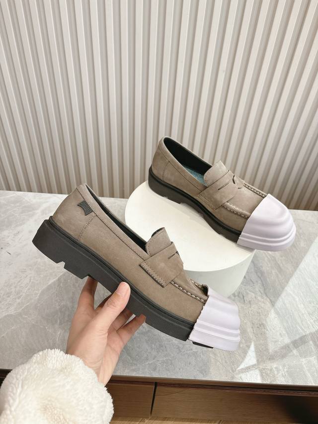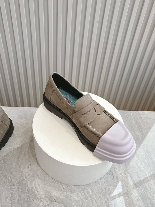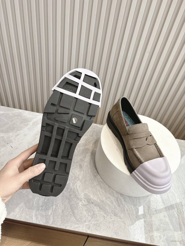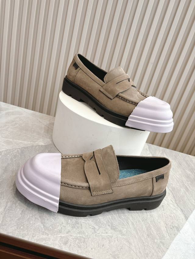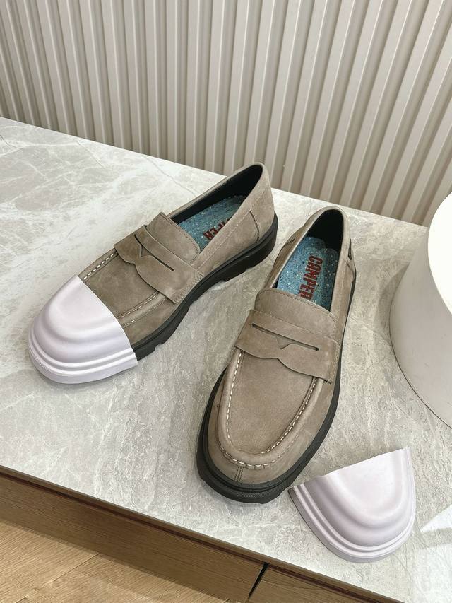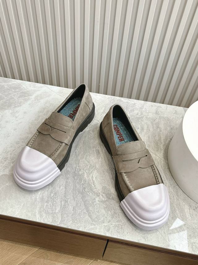 原版一比一打造,原版开模可拆卸式胶头,撞色工艺,德比鞋超级camper 德比鞋,可拆卸鞋头套随意搭配,非常亮眼 每个配色都很好看,所有细节到位,上脚超级舒服