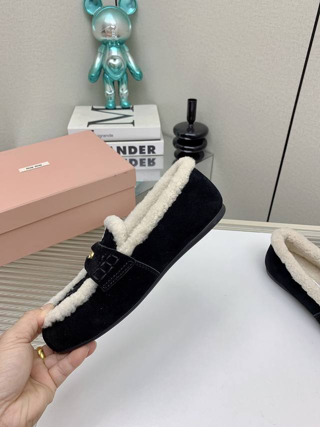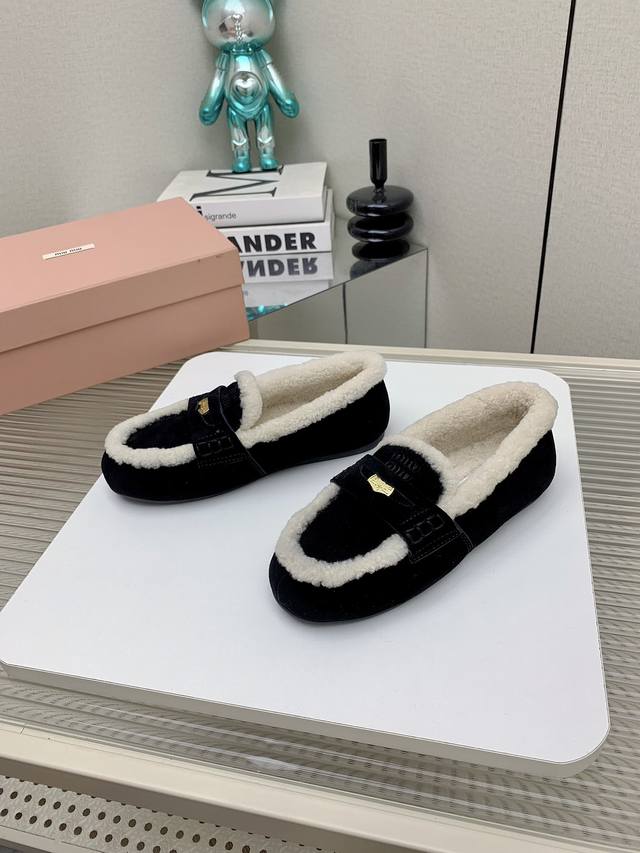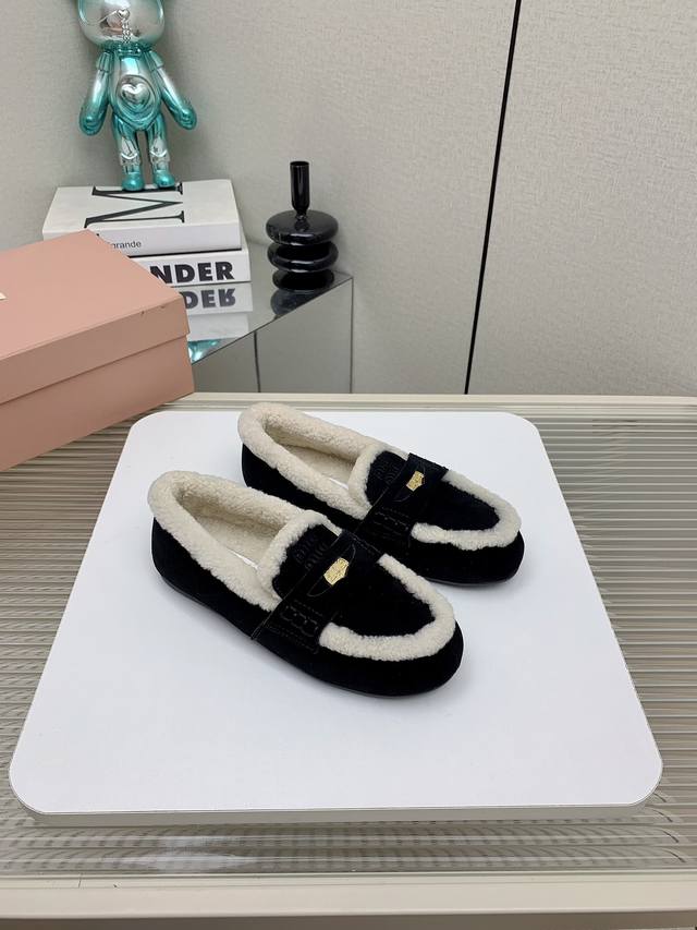 Miumiu 缪缪24Ss秋冬新款硬币纯羊毛乐福豆豆鞋 走秀新款 复古时尚简约高级 随意搭配 上脚非常舒适 鞋面采用金币和压花徽标logo彰显别具一格的经典格调