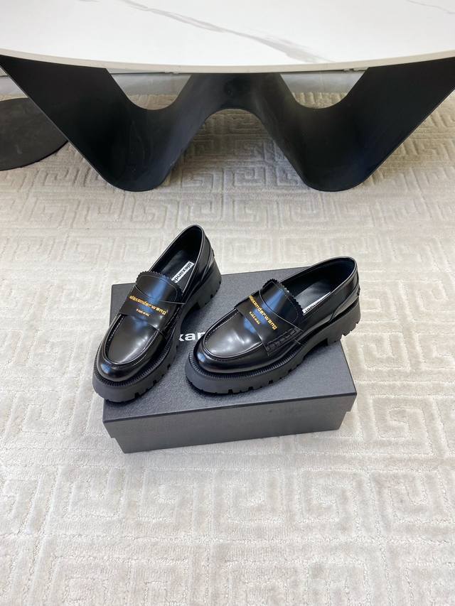 超多明星鞠婧祎杨幂等同款亚历山大王乐福鞋!超级舒服!厚底很轻!!!超厚的鞋底带来的是非寻常的增高效果以及视觉效果!上脚的真的炒鸡显腿细!但是确实有点重就是了!鞋面采用全牛皮制作!鞋面有标志性logo增加辨识度!!整体来说还是很美丽很舒适的!