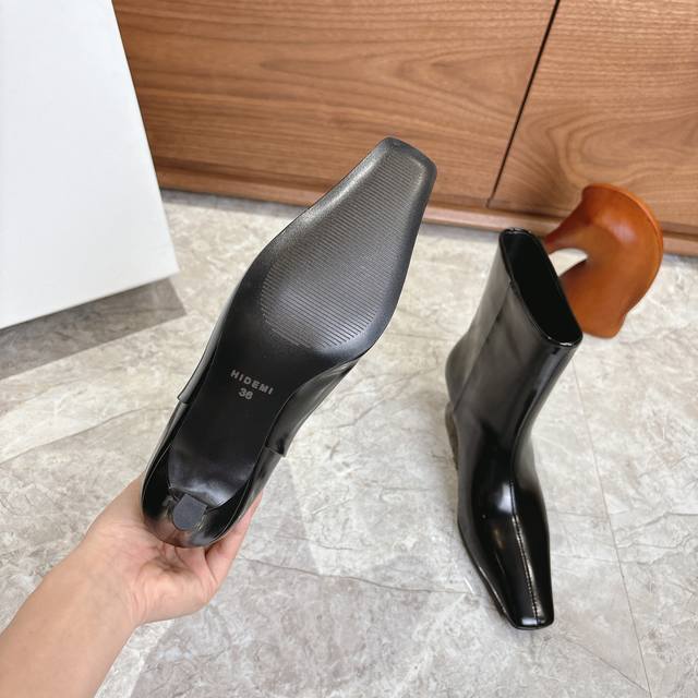 / 出厂 Hidemi 2025秋冬新款方头靴,每一季都让人惊叹不已,治愈有力量,视觉加倍享受,穿上就是时髦精 对版漆皮牛皮面料面料,羊皮内里 对版私模大底 码数: