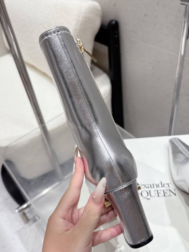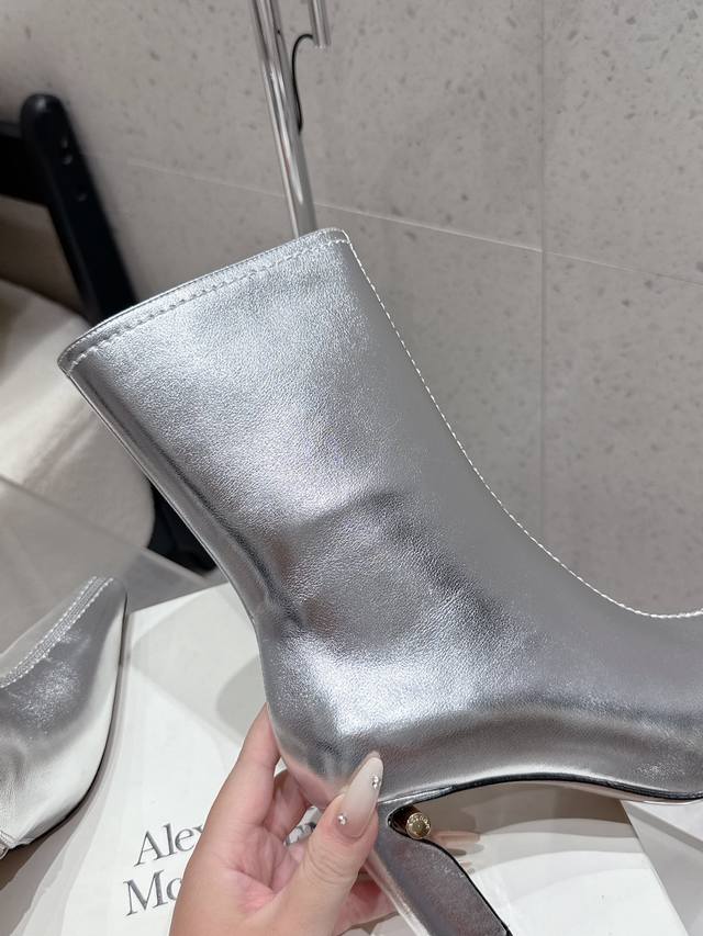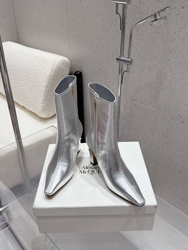 Mcqueen 麦昆 25Ss秋冬新款 粗跟 尖头 侧拉链 短靴