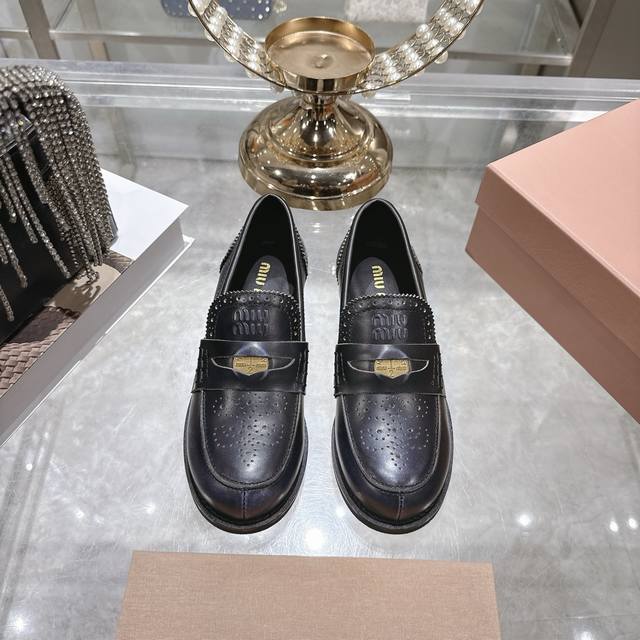 出厂 Miu Miu 25Ss 缪缪秋冬新款做旧半圆头单鞋