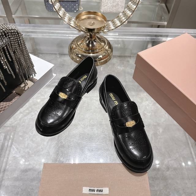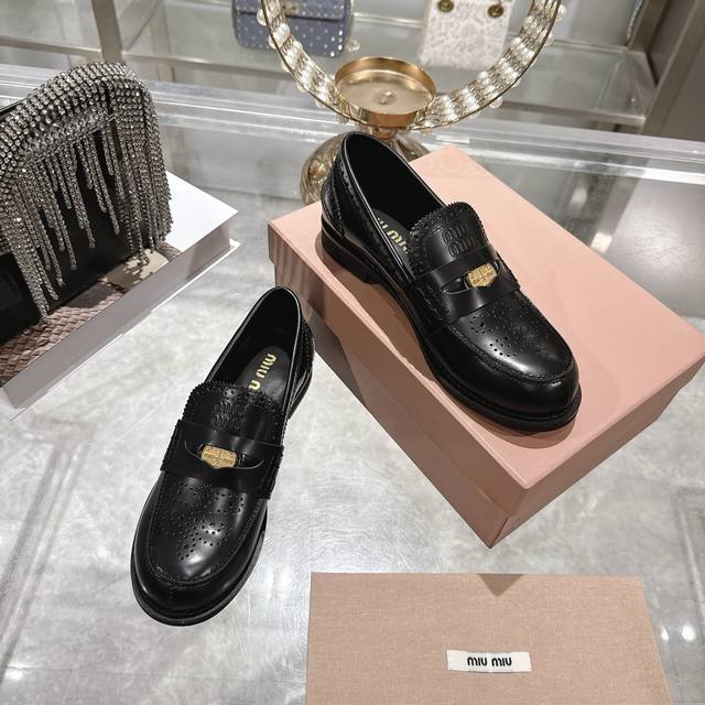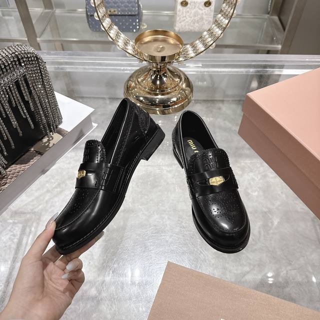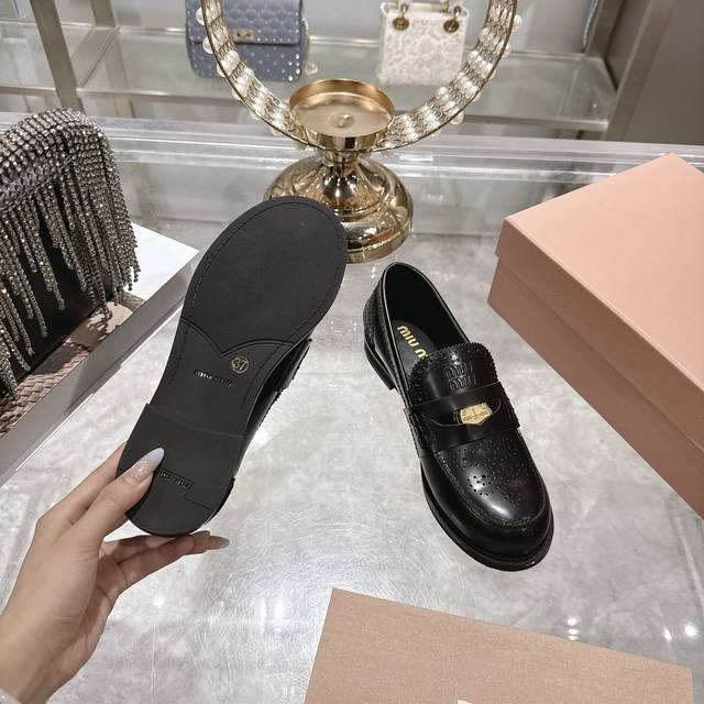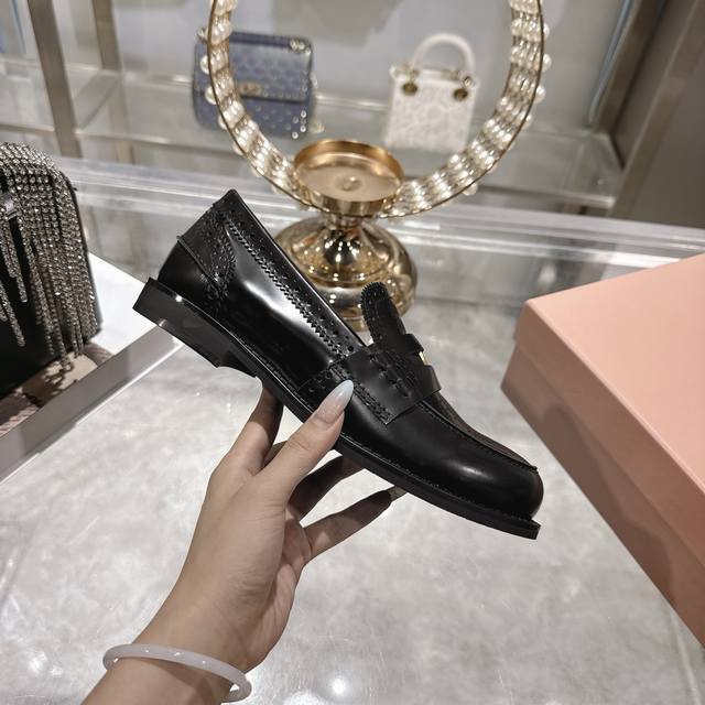 Miumiu 秋冬新款,细节的设计在一众乐福鞋中脱颖而出,整体鞋型圆滑秀气,一点不笨重,可以完全露出脚踝处,称得腿部线条比例较好上脚特别秀外中好看的很