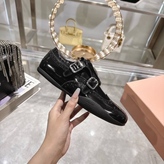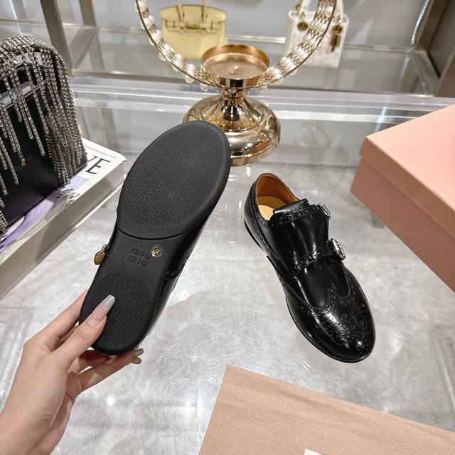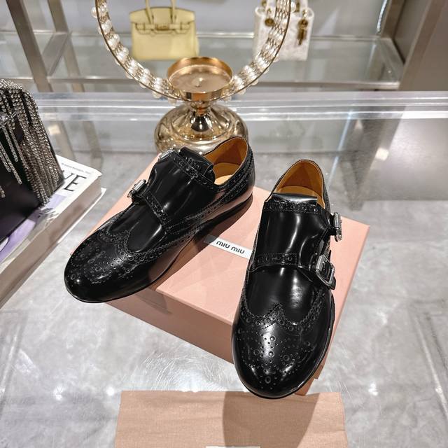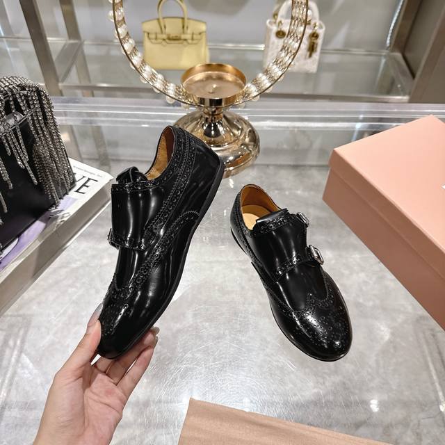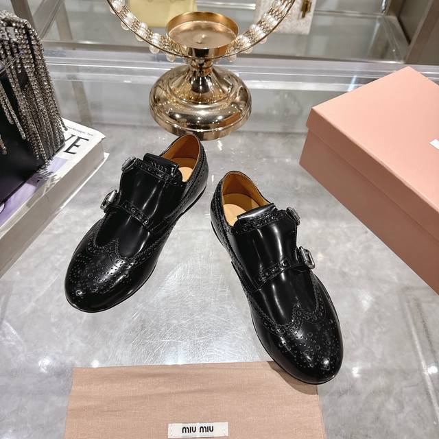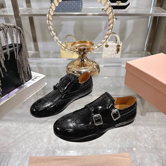 出厂 Miu Miu 25Ss 缪缪秋冬新款英伦系带方头单鞋