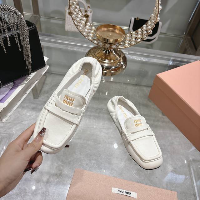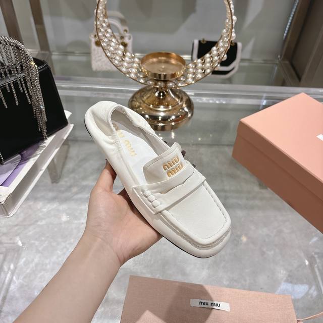 出厂 Miumiu 缪缪25Ss早春走秀新款一脚蹬懒人鞋玛丽珍芭蕾舞鞋 高跟单鞋