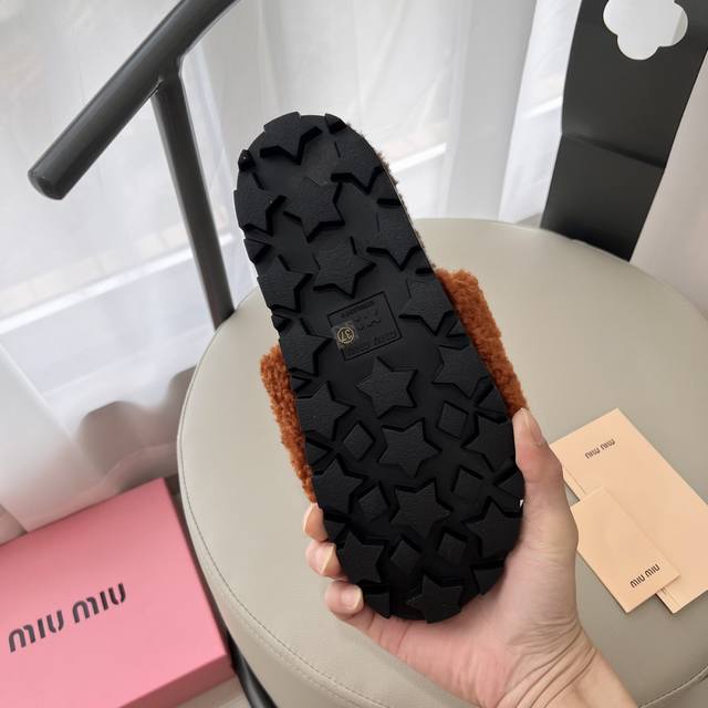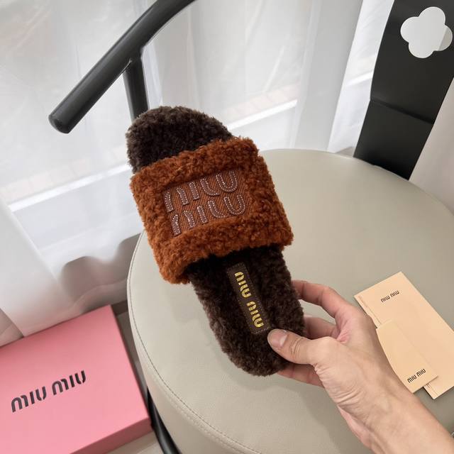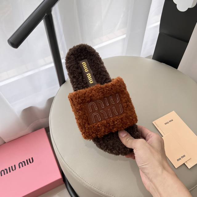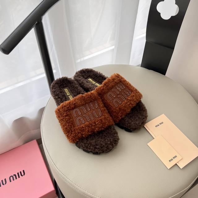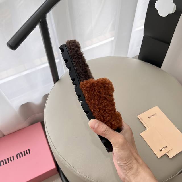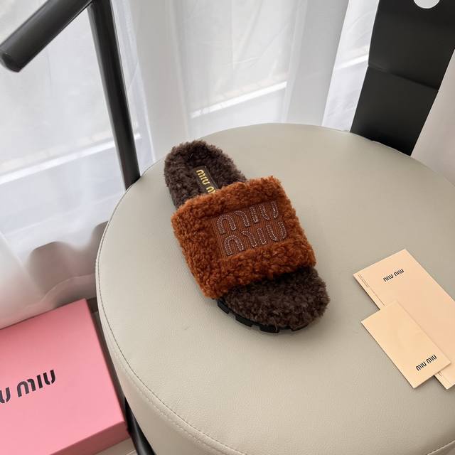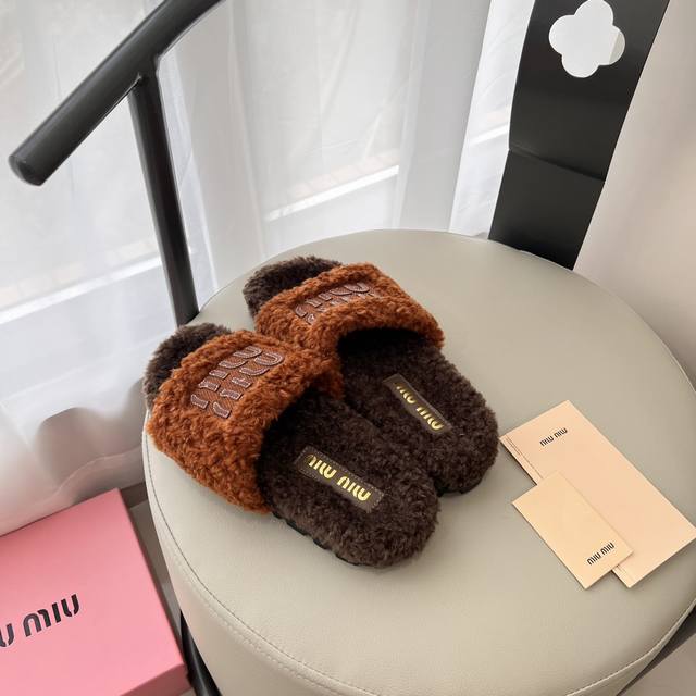 出厂: Miumiu 2025顶级专柜 早春新款 官网上新 独家首发 Miiu 25Ss-字母羊毛拖 Miu毛拖 Miu鞋控 鞋控 Ins穿搭时尚 小红书推荐