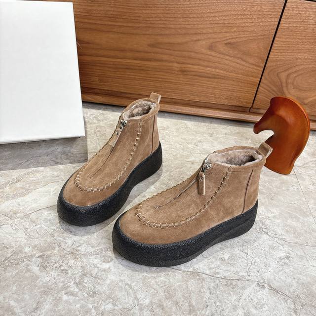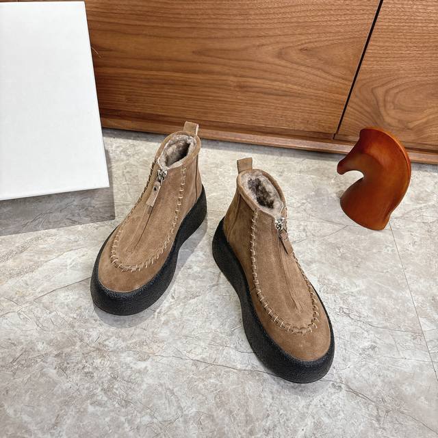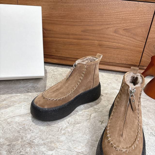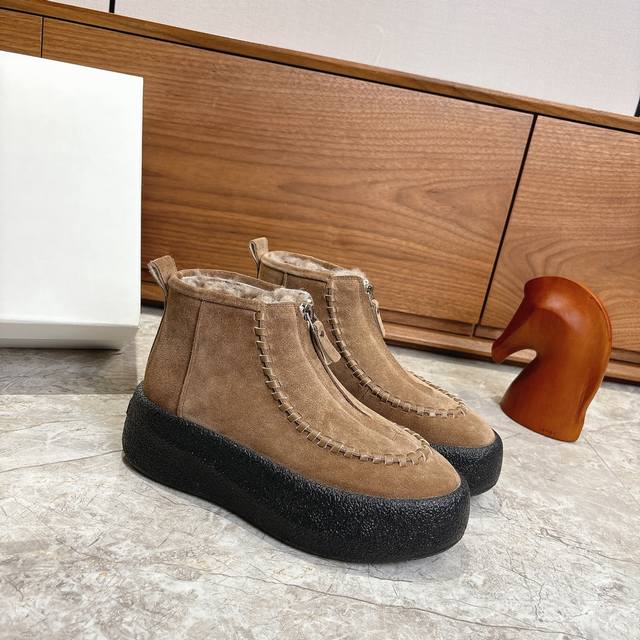 出厂 The Row2025Ss秋冬松糕厚底前拉链羊毛短靴原版购入一比一套楦开发!超多明星博主示范前拉链设计,经典不过时!简约时髦,穿脱超级方便,而且脚背高的女生也完全不用担心,明目张胆的增高神器