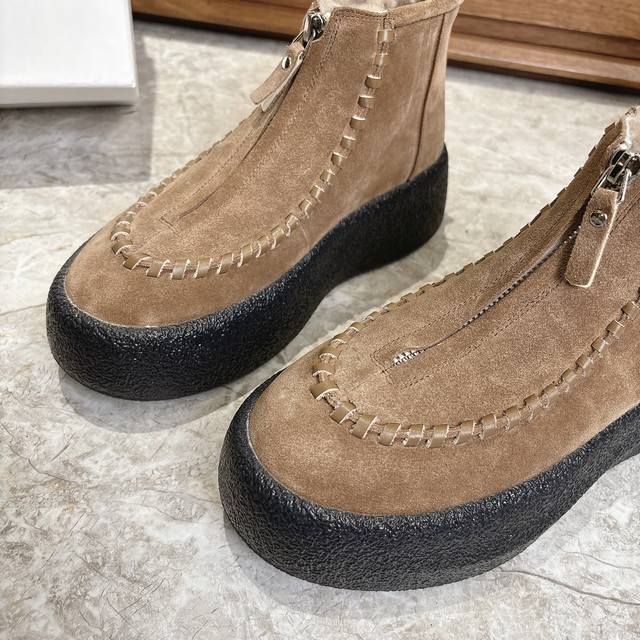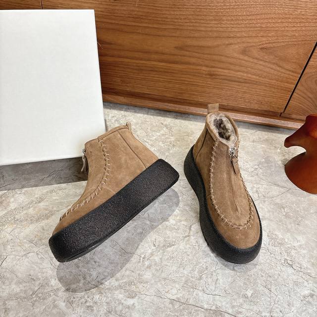 / 出厂 The Row2025Ss秋冬松糕厚底前拉链羊毛短靴原版购入一比一套楦开发!超多明星博主示范前拉链设计,经典不过时!简约时髦,穿脱超级方便,而且脚背高的女