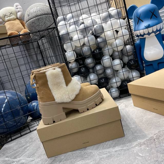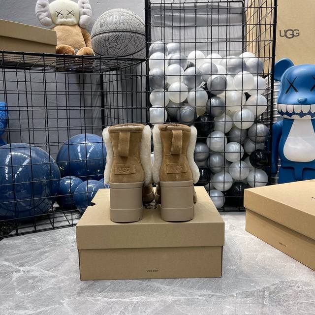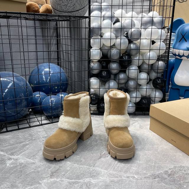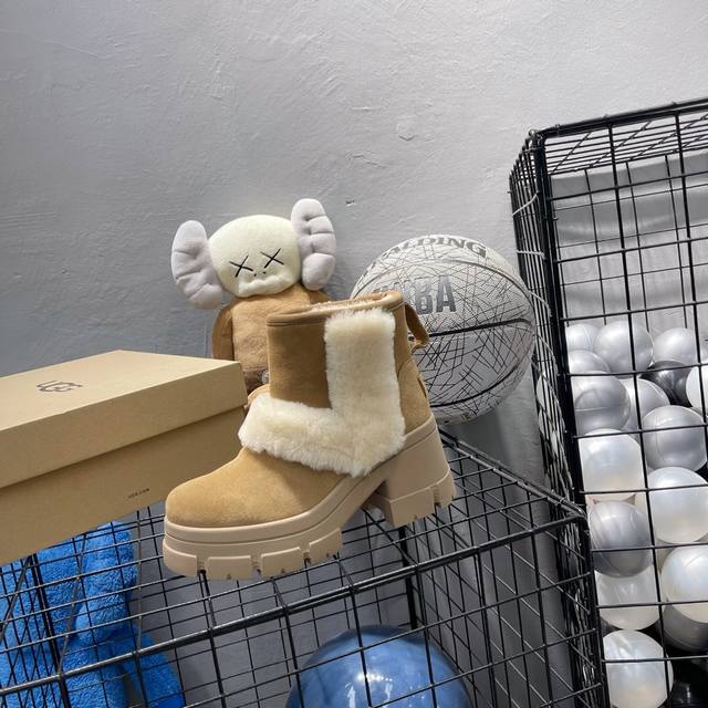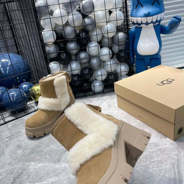 / 出厂 Ugg。 最高版本官网同款雪地靴机车靴:超显瘦显腿长。款式百搭时尚: 面料: 皮毛一体 内里和垫脚:澳洲进口纯百分之百的全真羊毛 大底:原版开模橡胶底.超