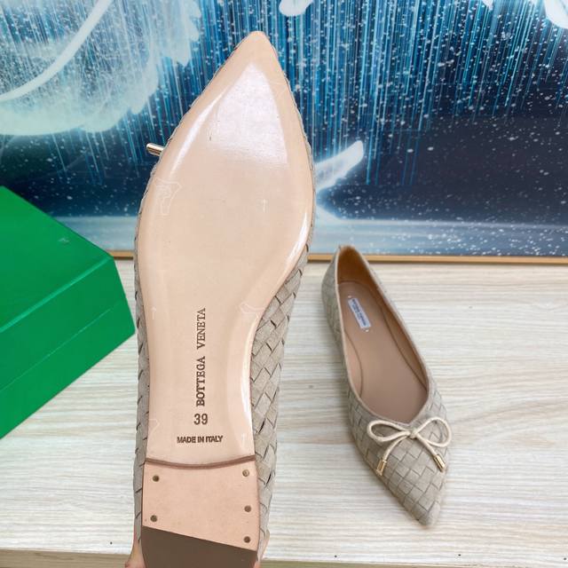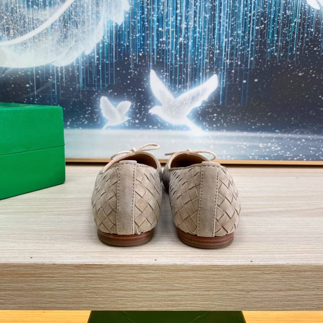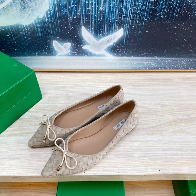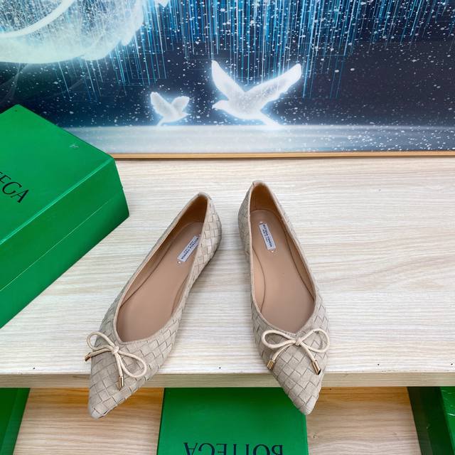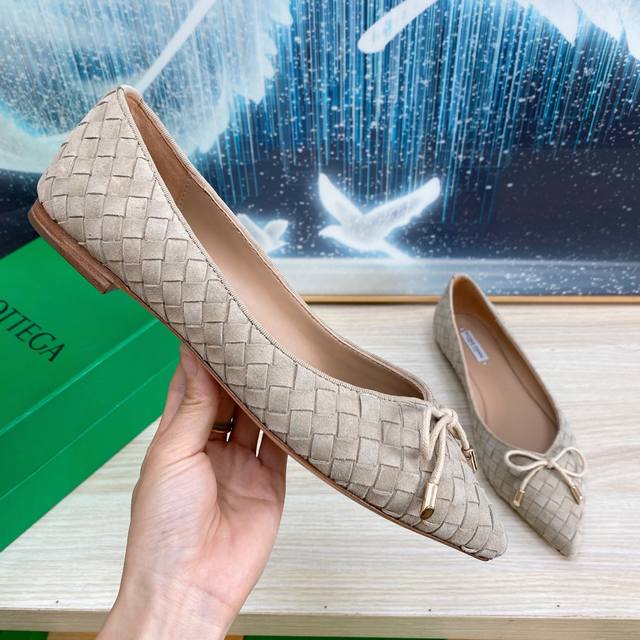 出厂470简约蝴蝶结 平底单鞋 真皮手工编织 bv 杏色羊反绒皮 Knot系列