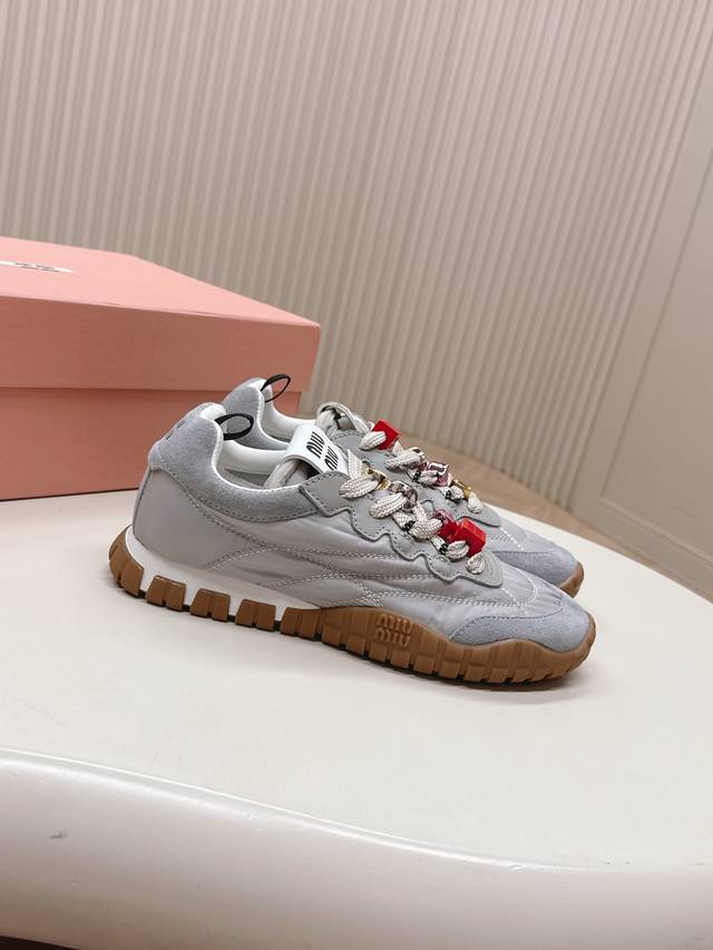 Miumiu最新爆款 前卫大胆的设计,Miu Miu风格融于此款厚底帆布运动鞋的简约线条,