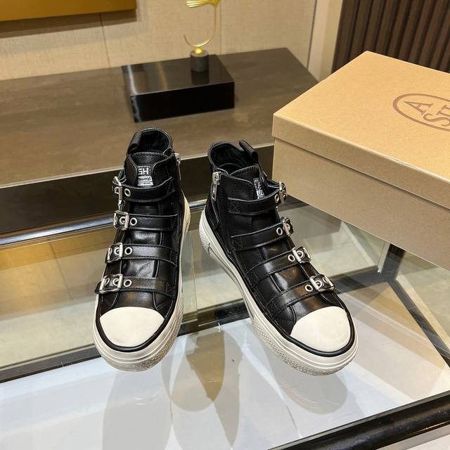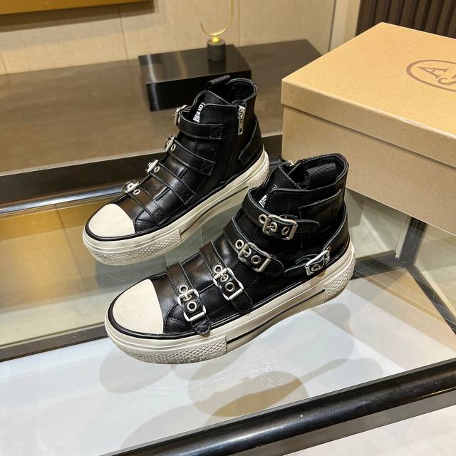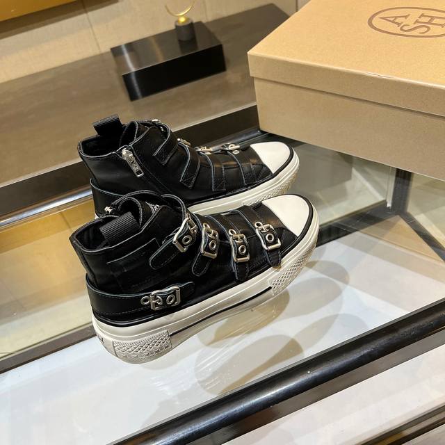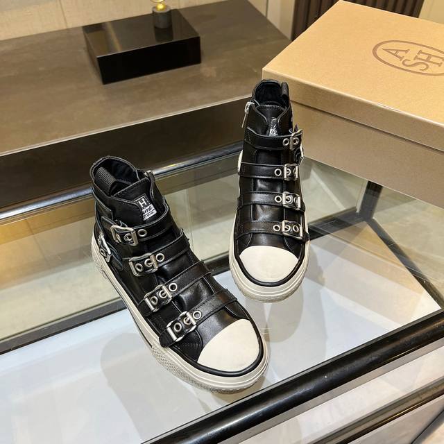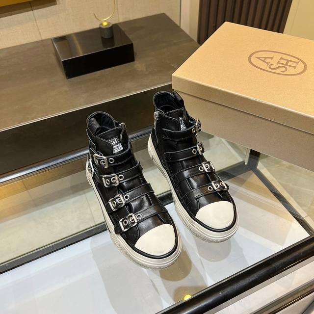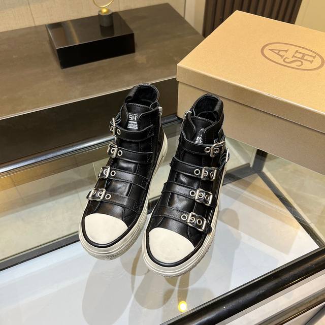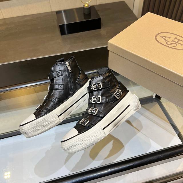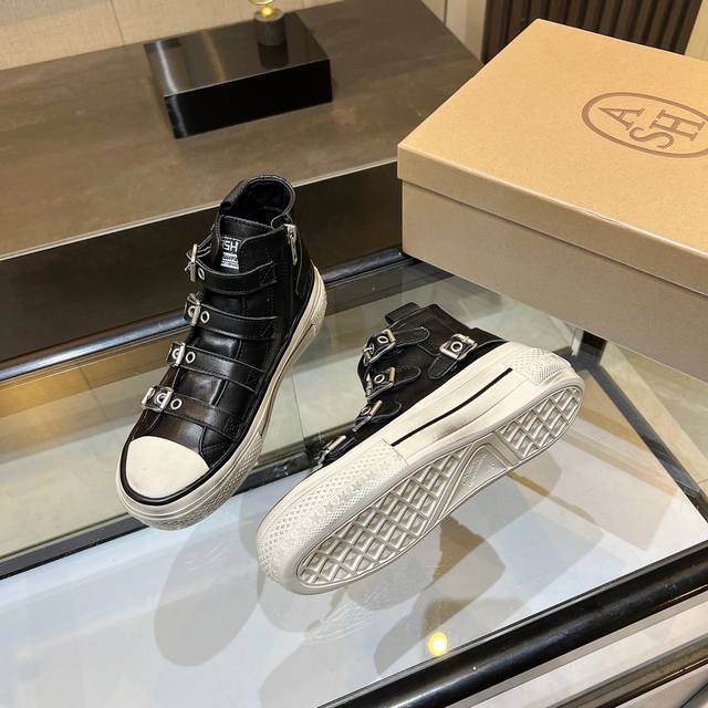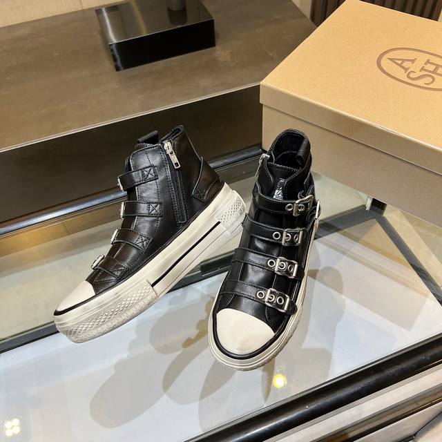 Ash新品女鞋秋季做旧高帮厚底运动休闲潮鞋,精选原版经典金属饰扣,原版开模防滑橡胶大底跟高4Cm抛脏设计,精美线条、简约大气,上脚感超级舒适上档次