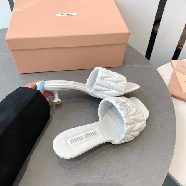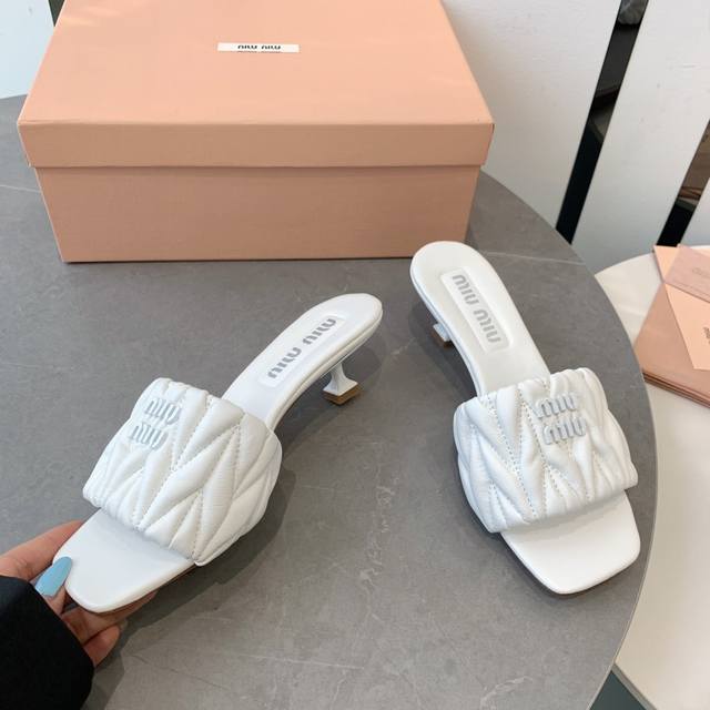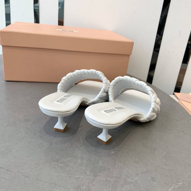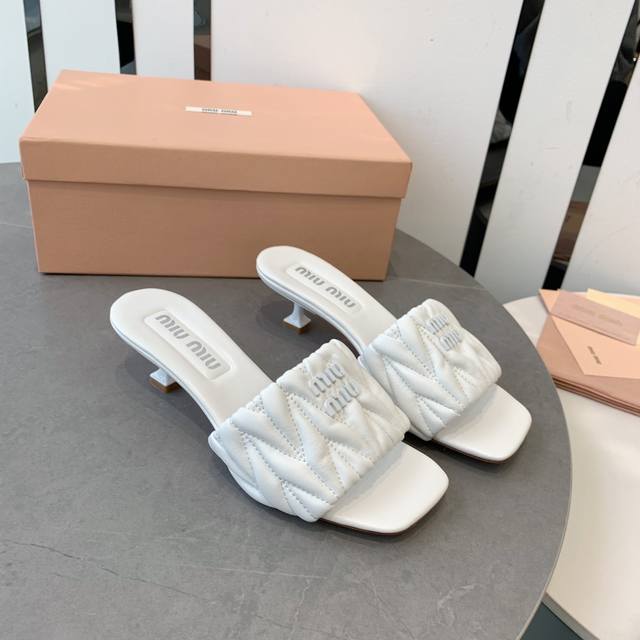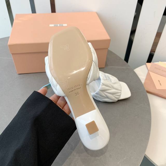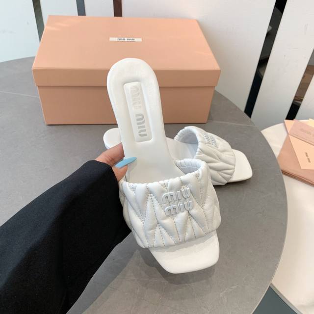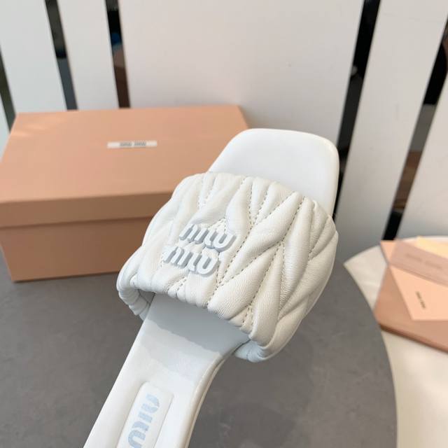 Miumi*2025Ss春夏新款平底小羊皮凉鞋拖鞋