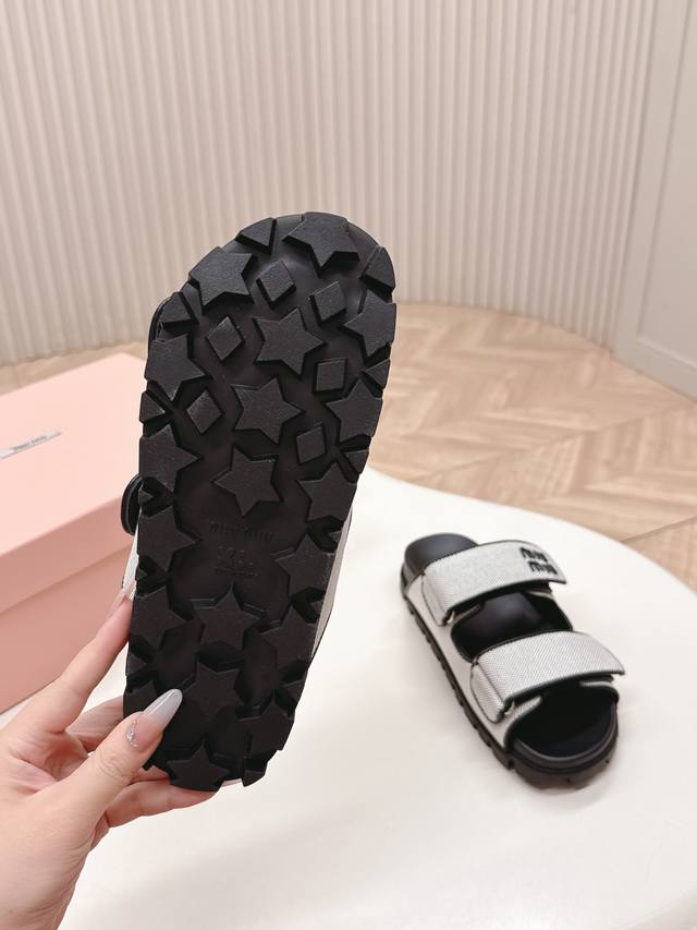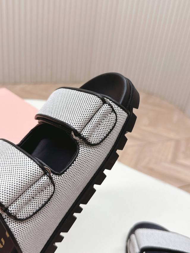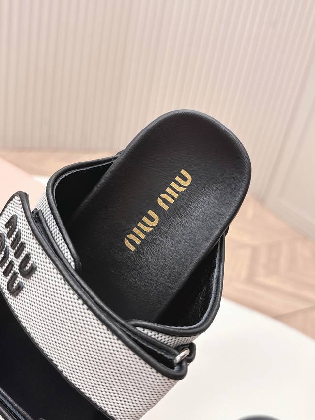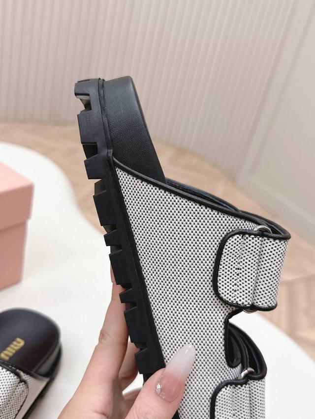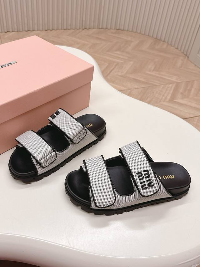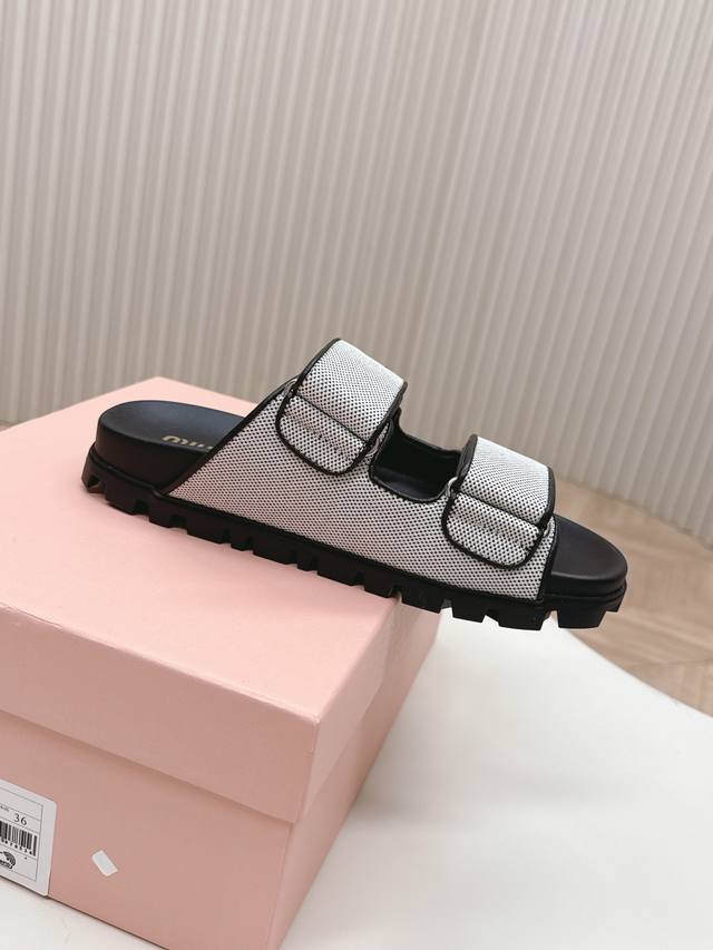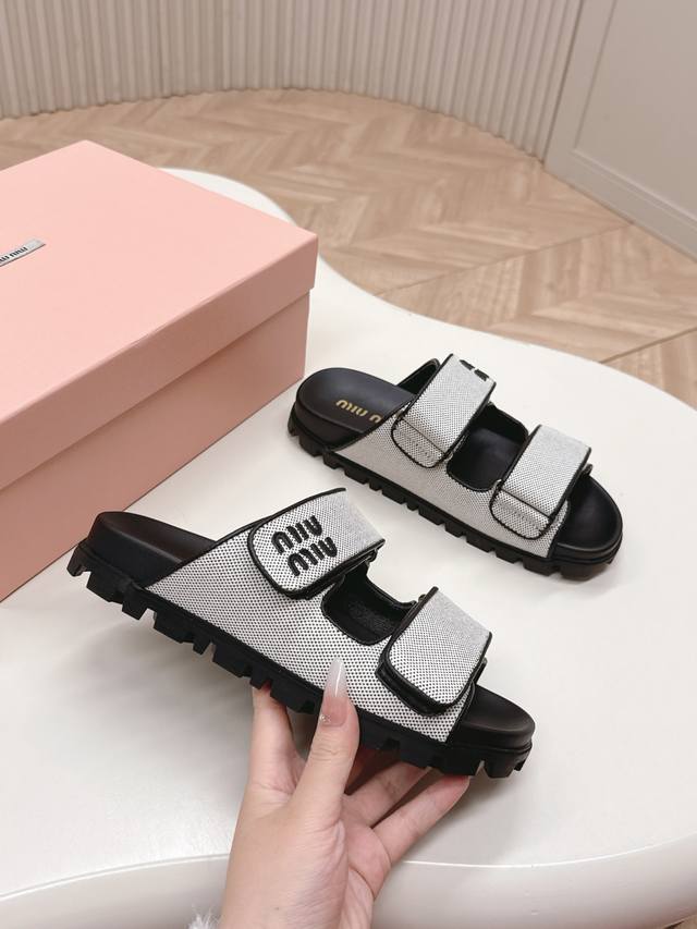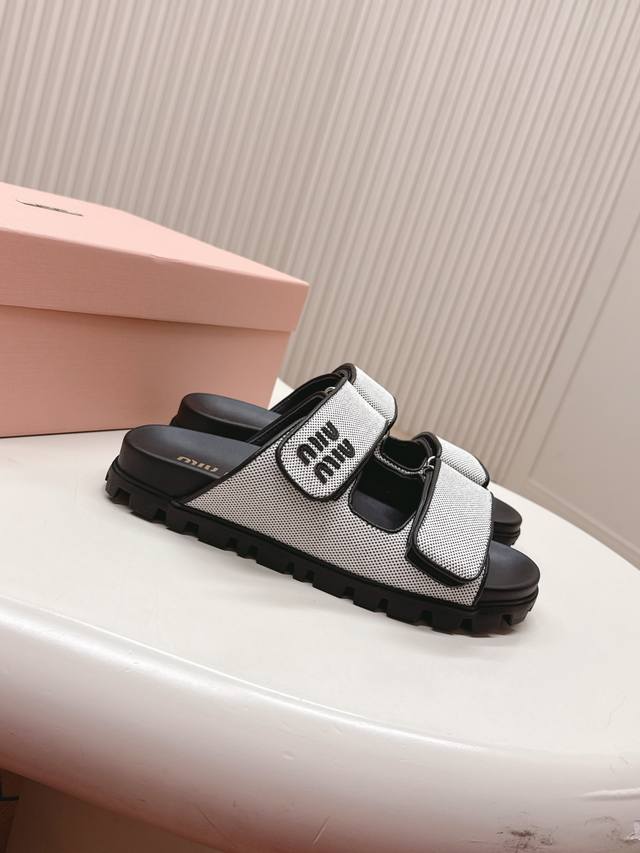 / 出 Miumiu 2025春夏新款凉鞋 罗马厚底魔术贴凉鞋 拖鞋 半拖 最新走秀款,经典升级 舒适度与时髦度并存 每个颜色搭配都好看,设计搭配不同风格需求 鞋面