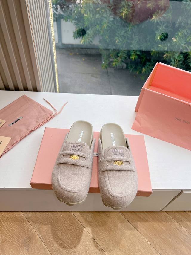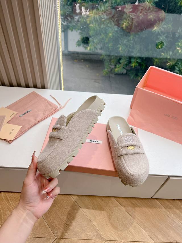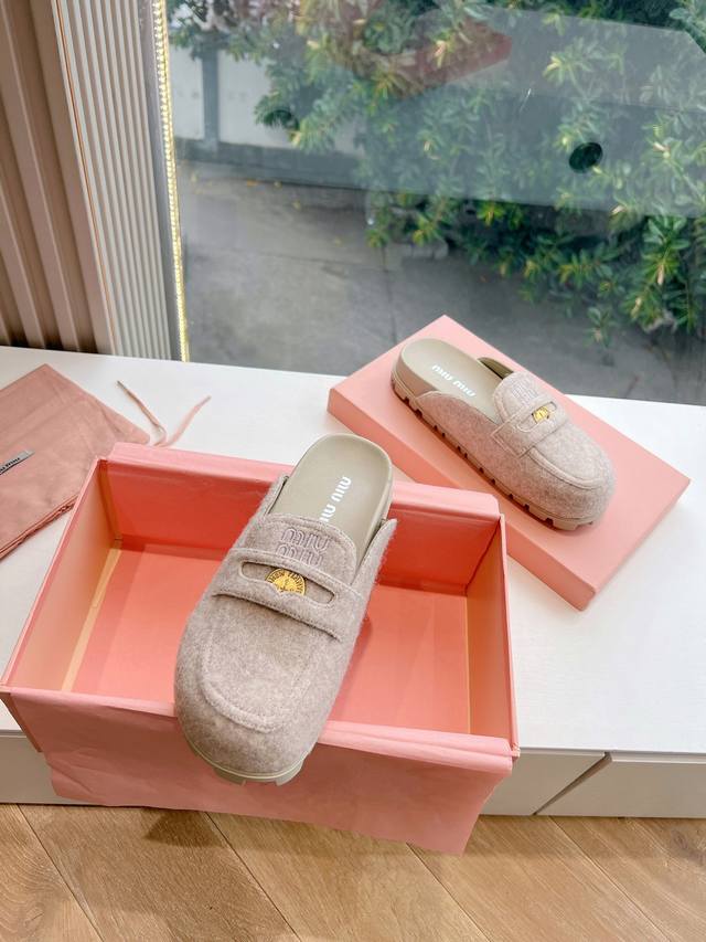 刺绣logog0286现货供应miumiu*缪缪厚底 年新款英伦风包头毛拖