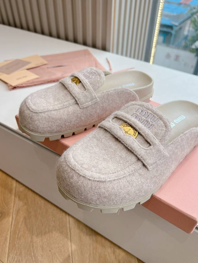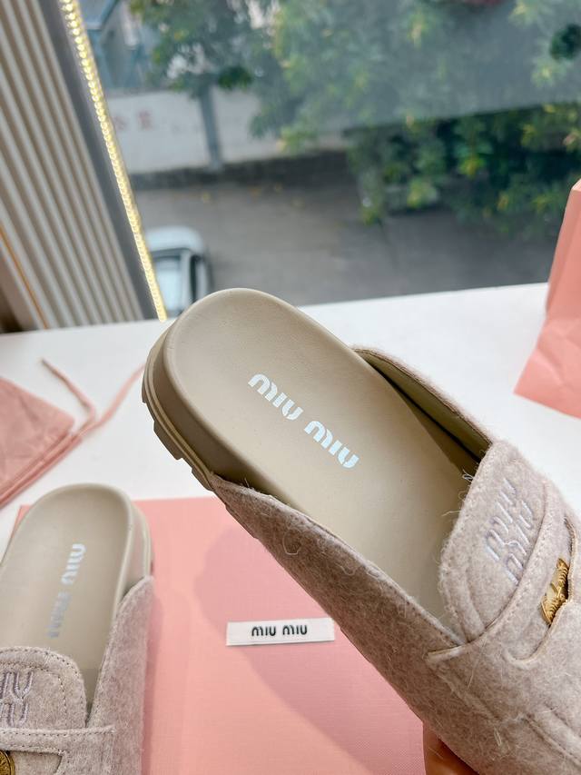 Miumiu缪缪2024新款字母羊毛毛拖 全真羊毛 码数35-40