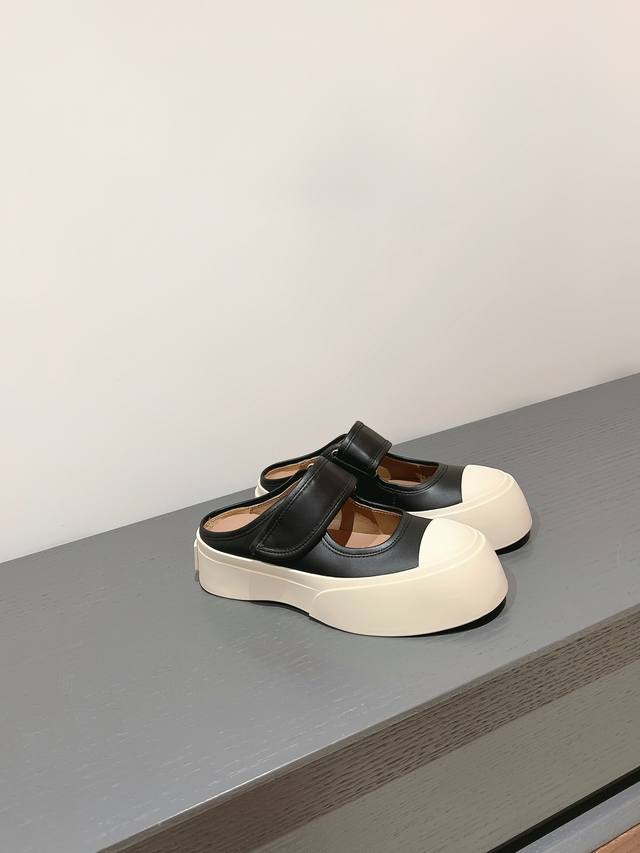 半拖黑皮 Marni经典款厚底大头玛丽珍珍娃娃鞋 大大头,超级可爱,魔术贴设计,轻盈,不累脚,自带增高效果,拉长腿部线条,显瘦显高! 35-40码