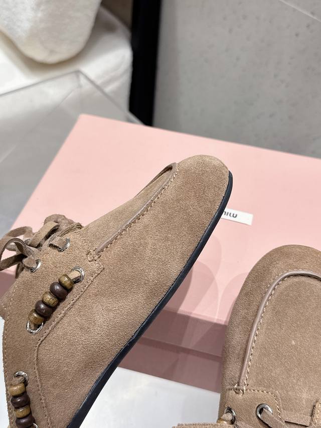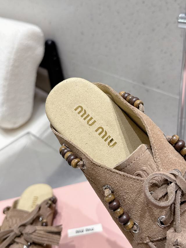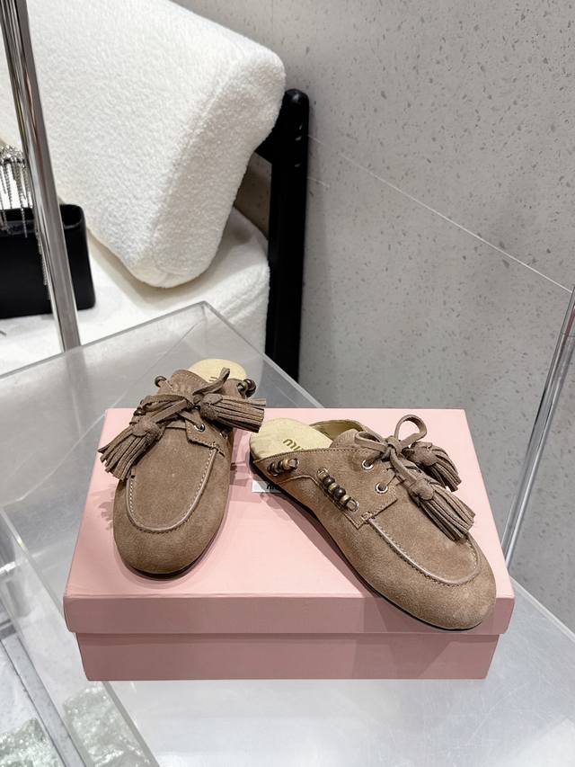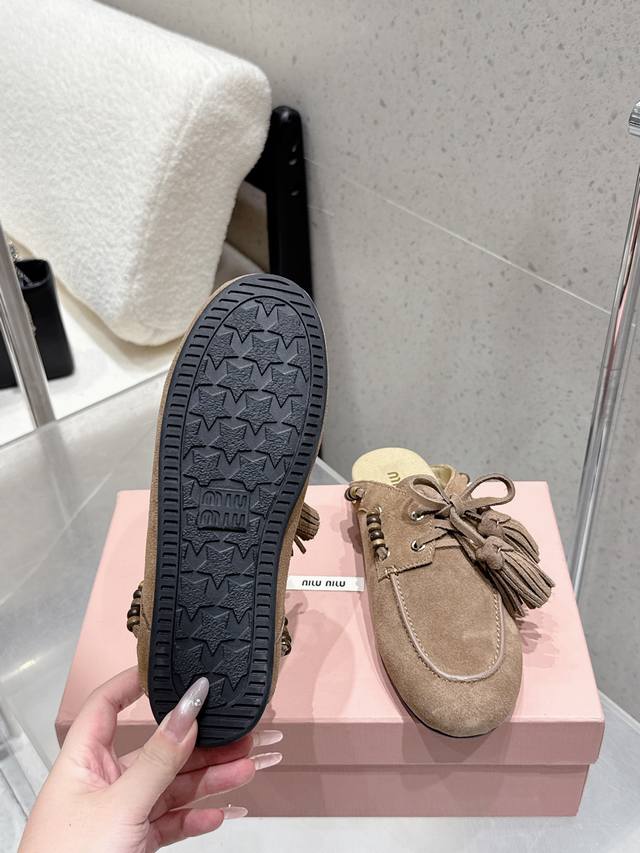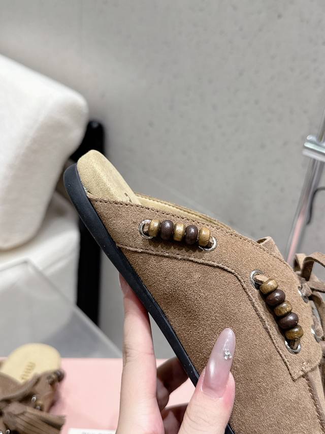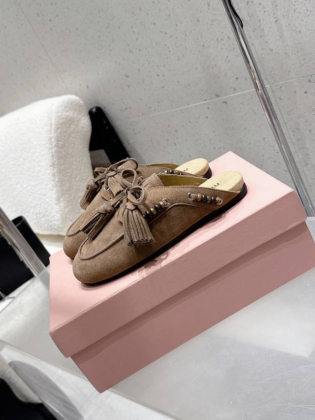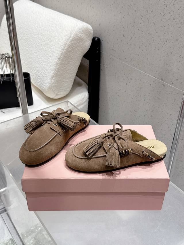 Miumiu 2025秋冬乐流苏串珠老钱风 乐福鞋半拖鞋 太好看了,麂皮“一脚蹬”复古鞋~俏皮的系带流苏,复古的干异色系,内里磨毛的设计让穿着体验度更加高涨非常舒适又洋气充满活力与时尚态度 轻松玩转街头 青春洋溢的酷时尚风格 轻松随意的优雅风格 高定精神的奢华风格 订制高丝光牛绒 原版大底 35-41码 40 41 定做