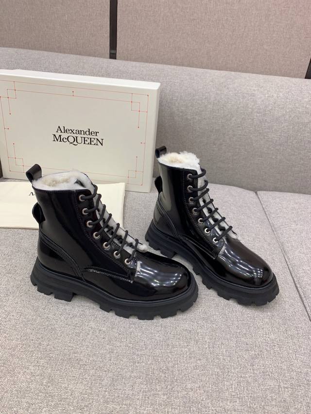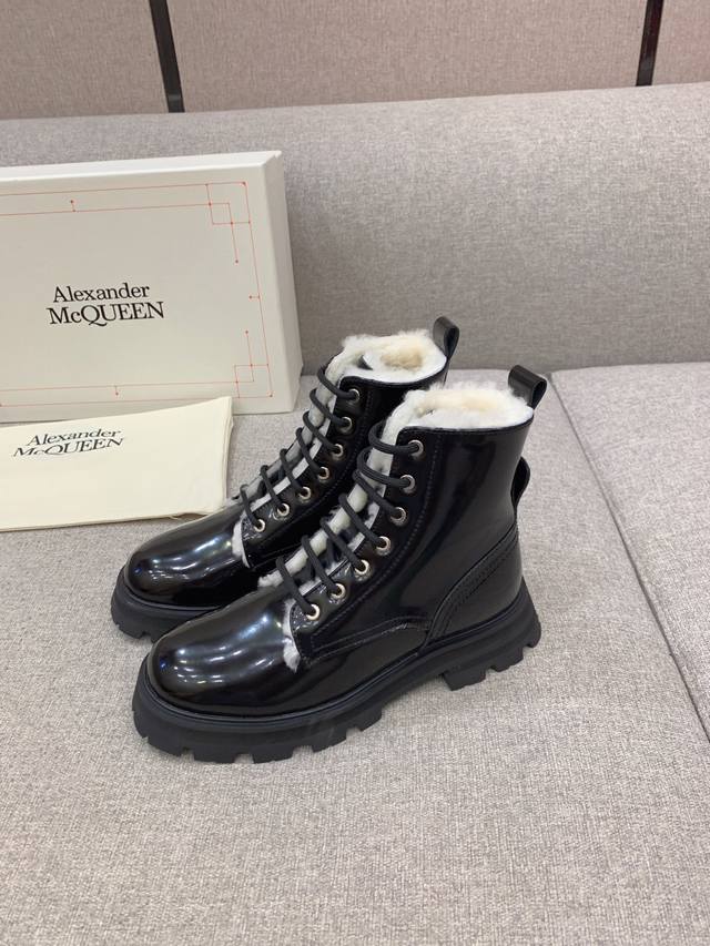 / 单鞋 短靴 Alexander Mcquee*厚底休闲系列 羊毛保暖 冬天必备 小个子女生的福音 上脚超酷 经典百搭 鞋面开边珠牛皮 内里垫脚进口澳洲羊毛 原版