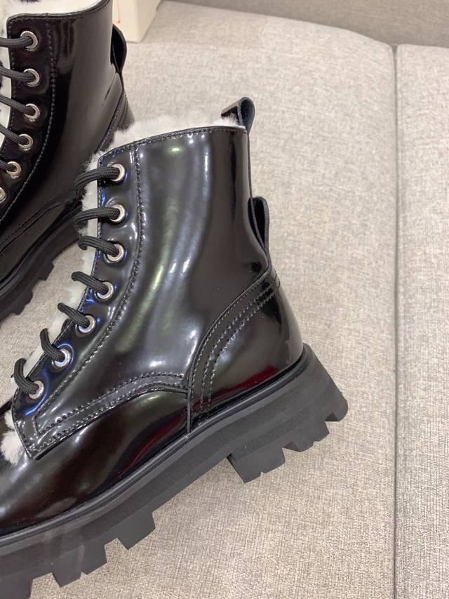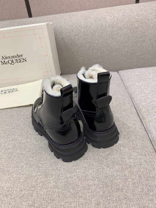单鞋 短靴 Alexander Mcquee*厚底休闲系列 羊毛保暖 冬天必备 小个子女生的福音 上脚超酷 经典百搭 鞋面开边珠牛皮 内里垫脚进口澳洲羊毛 原版