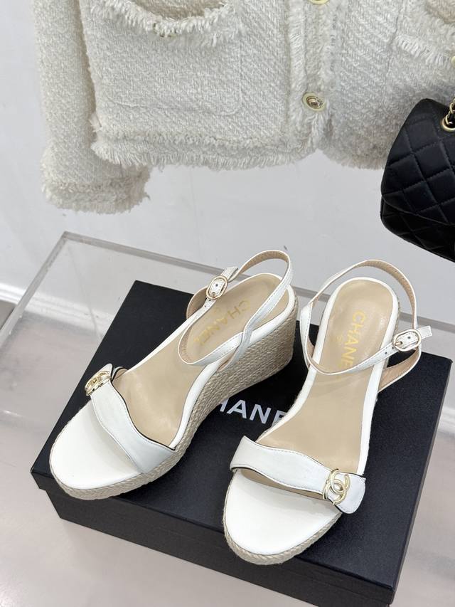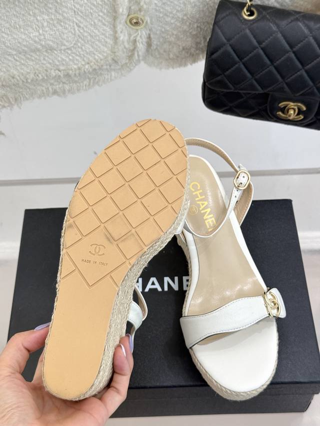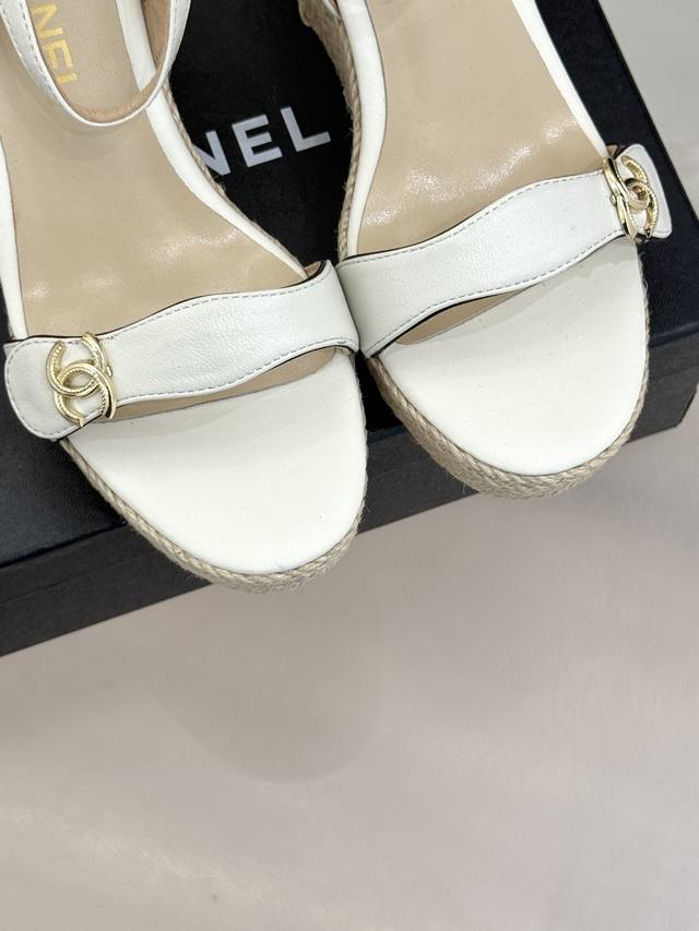 麻绳双C厚底坡跟凉鞋