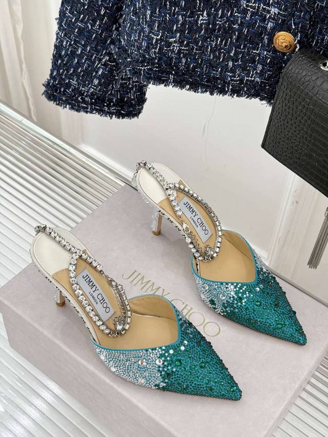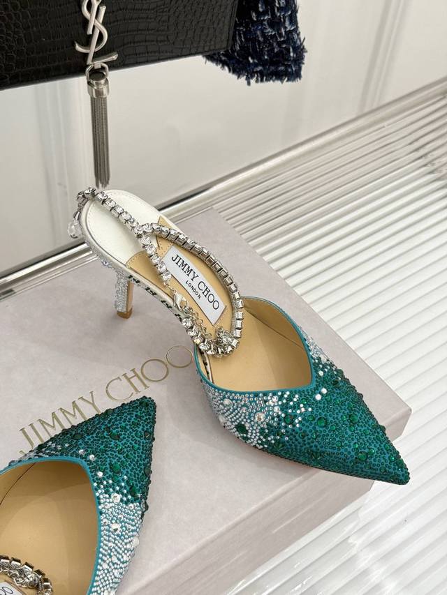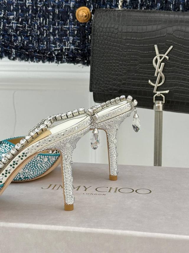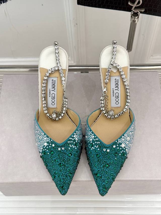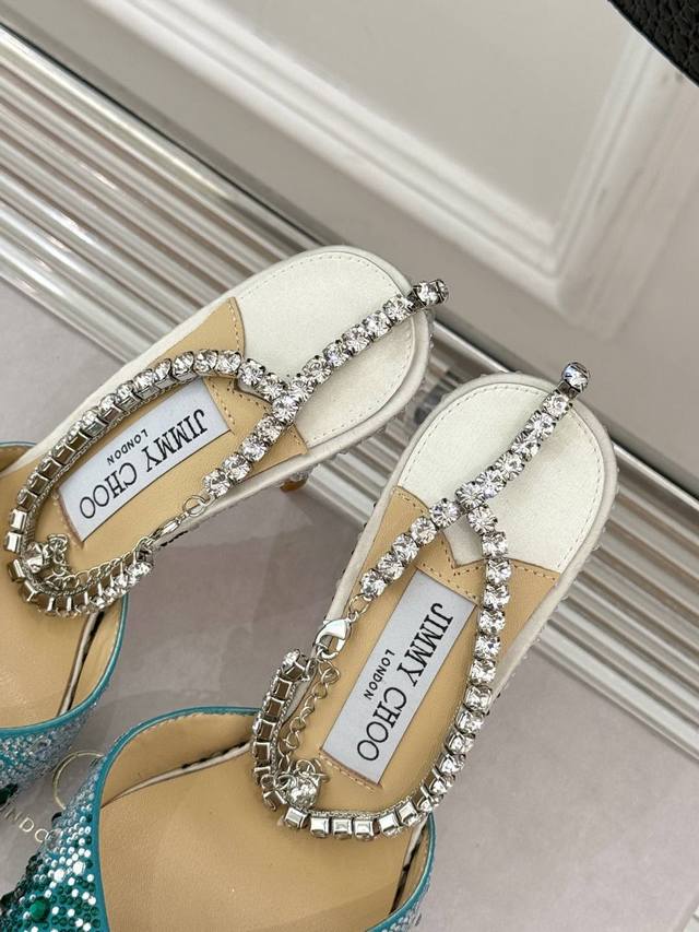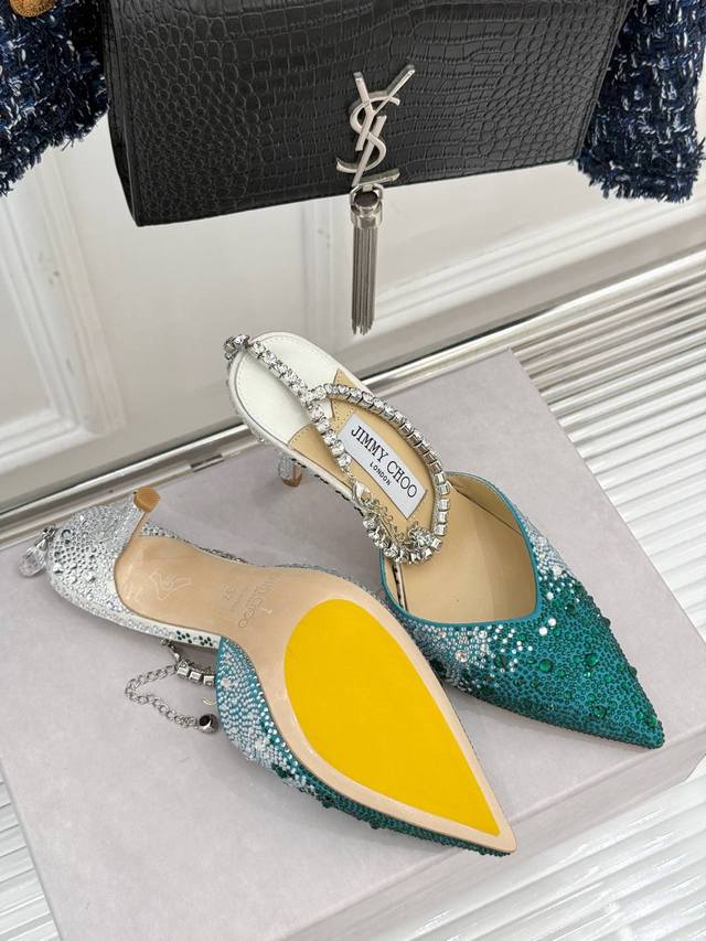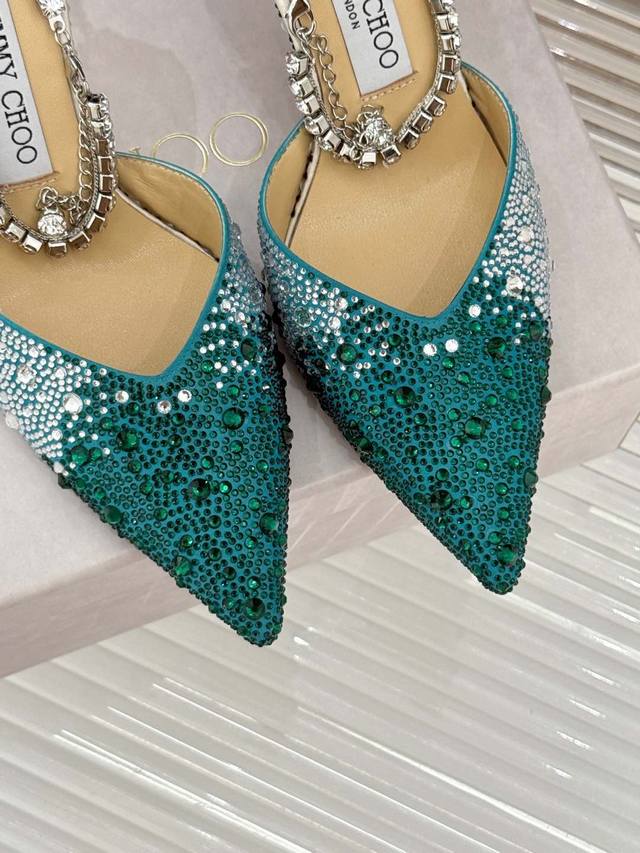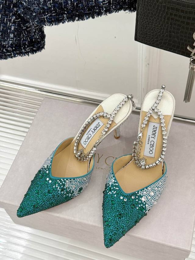 Jimmy Choo 吉米周经典钻石链条尖头水晶高跟凉鞋