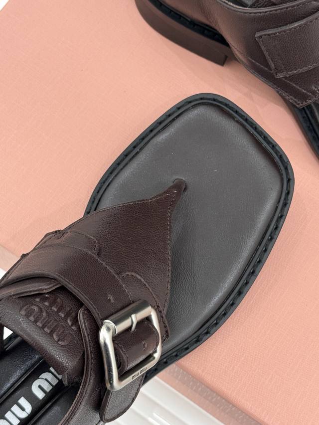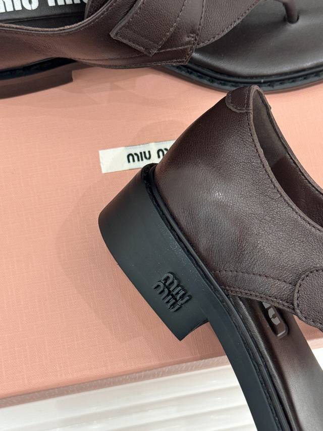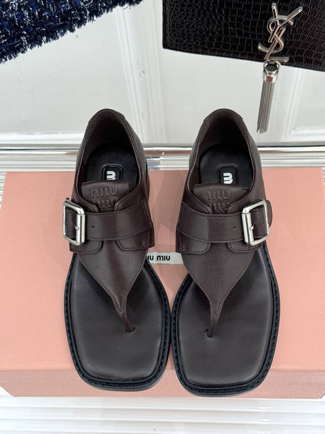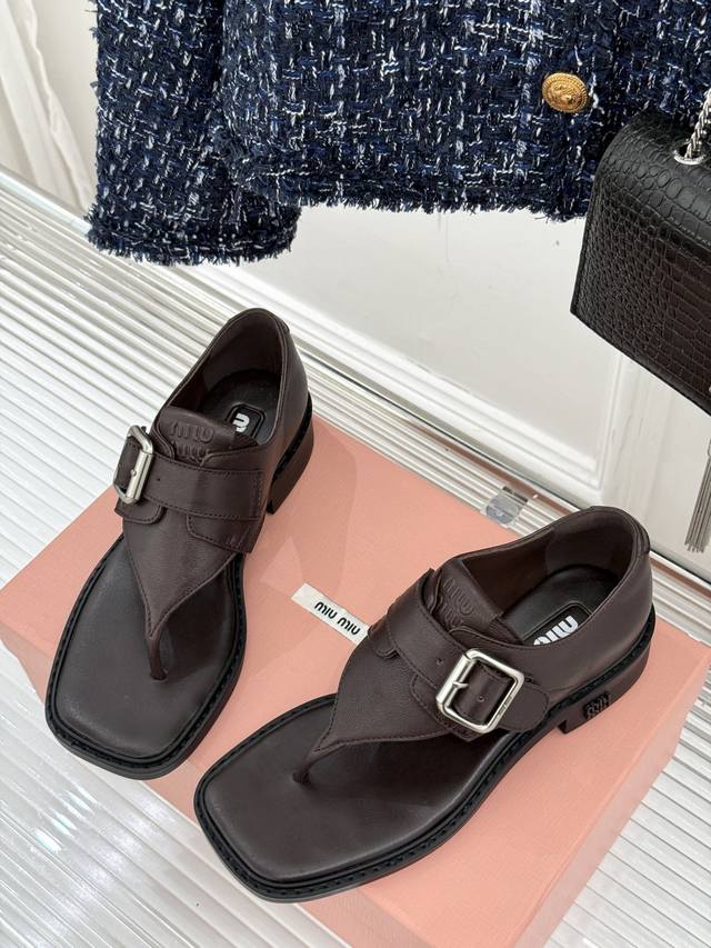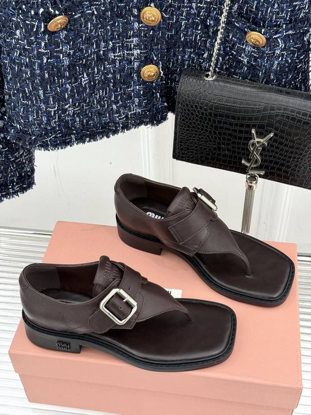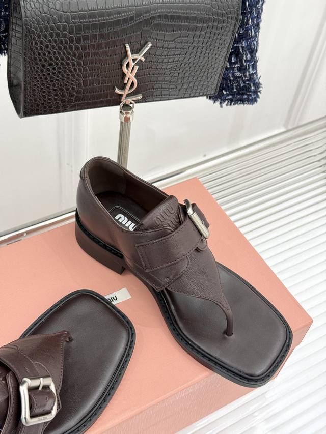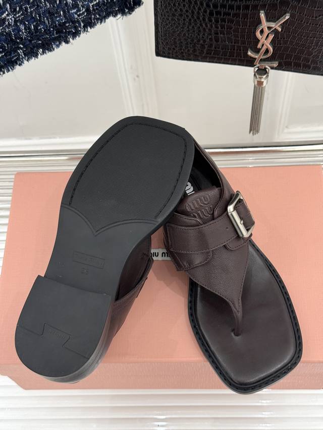 / 厂价Miumiu 缪缪25Ss走秀夹脚凉鞋一定是今夏穿搭的时髦尖子生主打一个简单且随性自然的美感面料采用进口小牛皮内里垫脚均为羊皮意大利进口牛皮大底Size:3