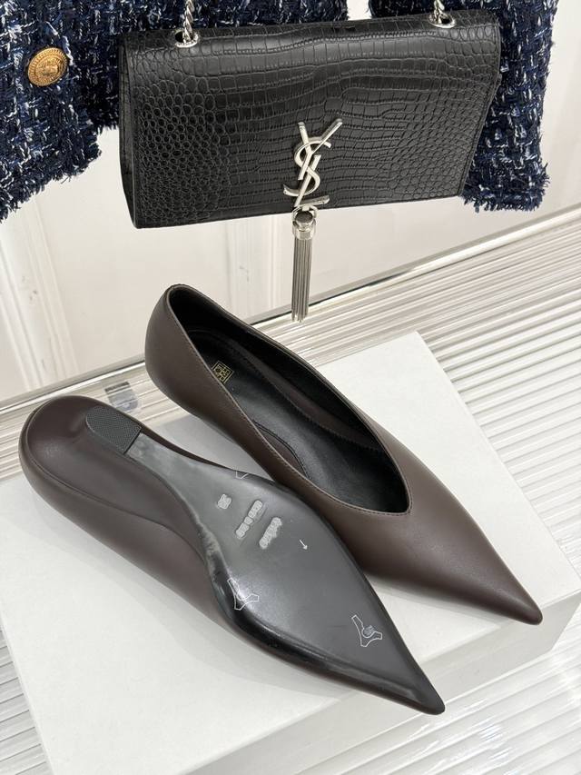 厂价Toteme 25Ss尖头坡跟单鞋!极简主义风格 复古又高级!简约又大气 属于非常耐看的款式!鞋面采用进口小牛皮内里采用水染羊皮意大利进口真皮大底码数:35