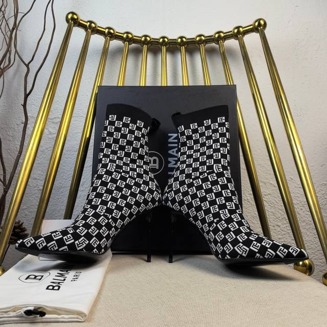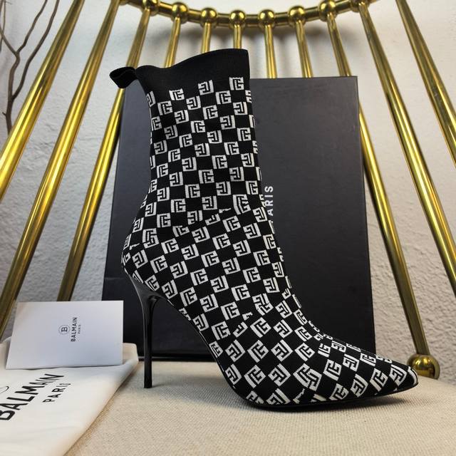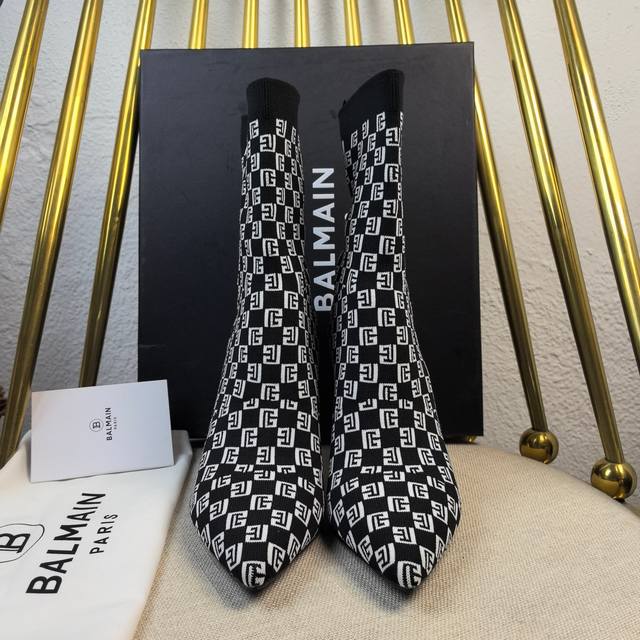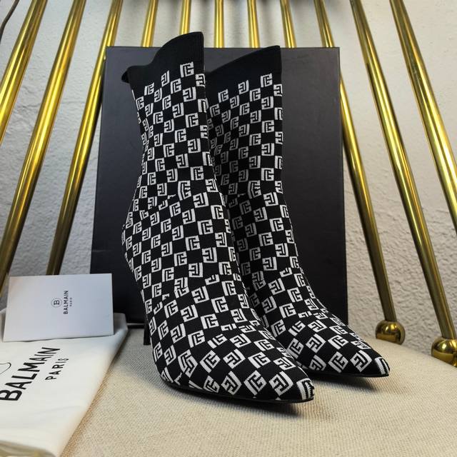 / 厂批: , Balmain巴尔曼 秋冬新款针织靴!海外订购原版,1:1完美复刻! 鞋面:原版定制飞织鞋面 内里.垫脚:牛皮里 跟高:9.5Cm Size:35-
