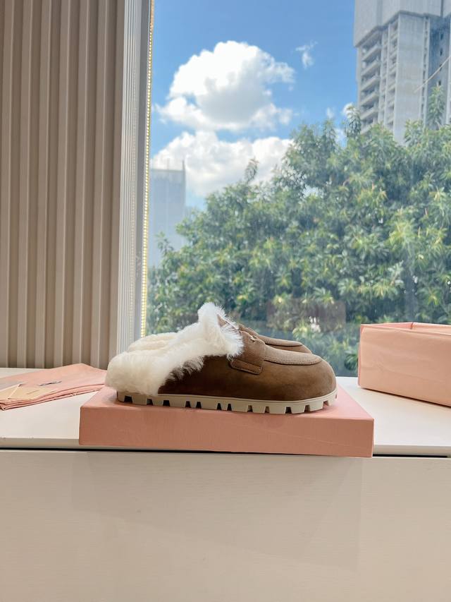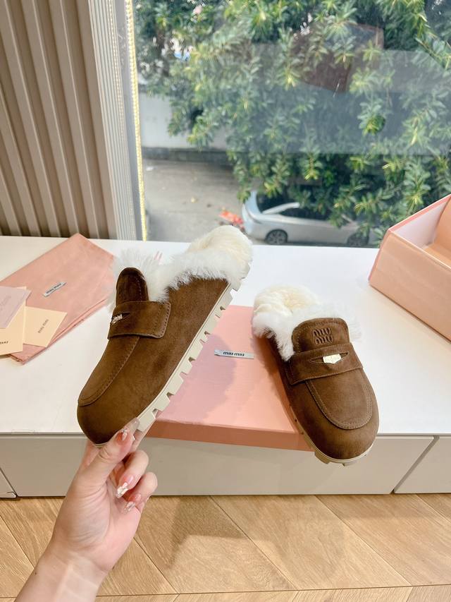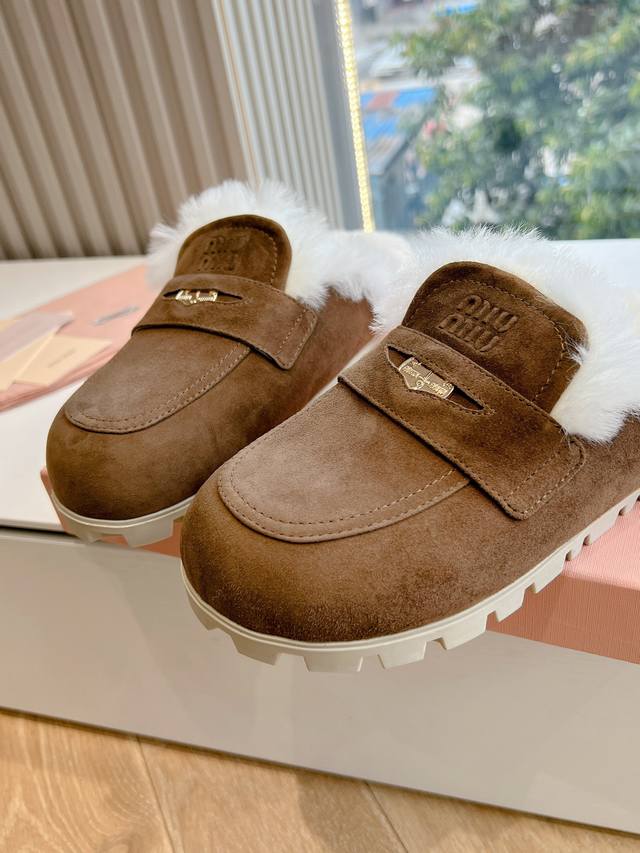 压印logog024现货供应miumiu*缪缪厚底 年新款英伦风包头毛拖 怎么穿都好看今夏时髦精最爱 看起来不怎么舒服 上脚超级舒服 面料:磨砂鹿皮 内里:牛皮