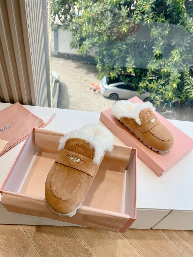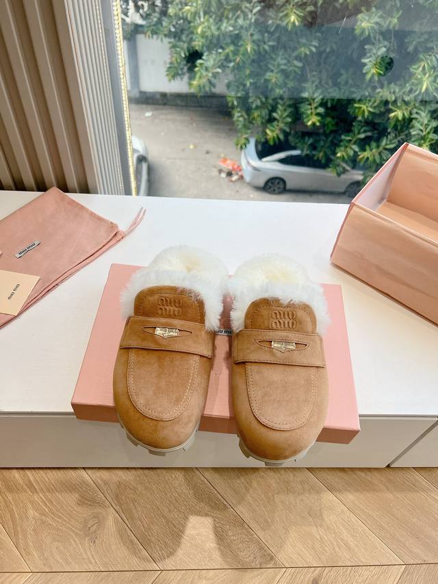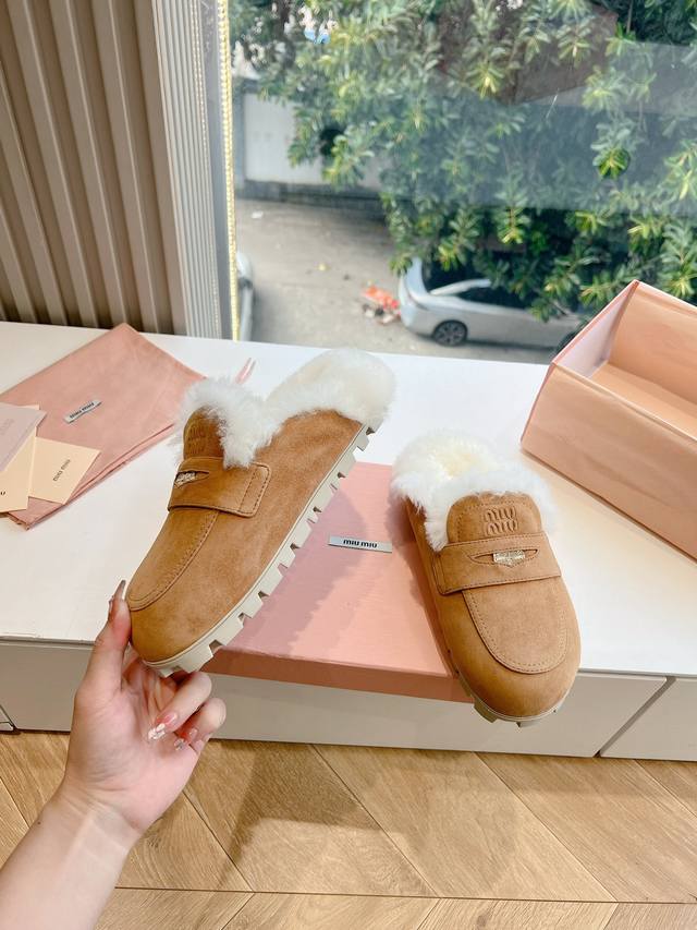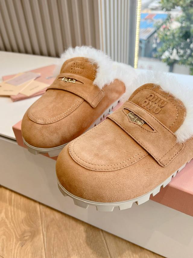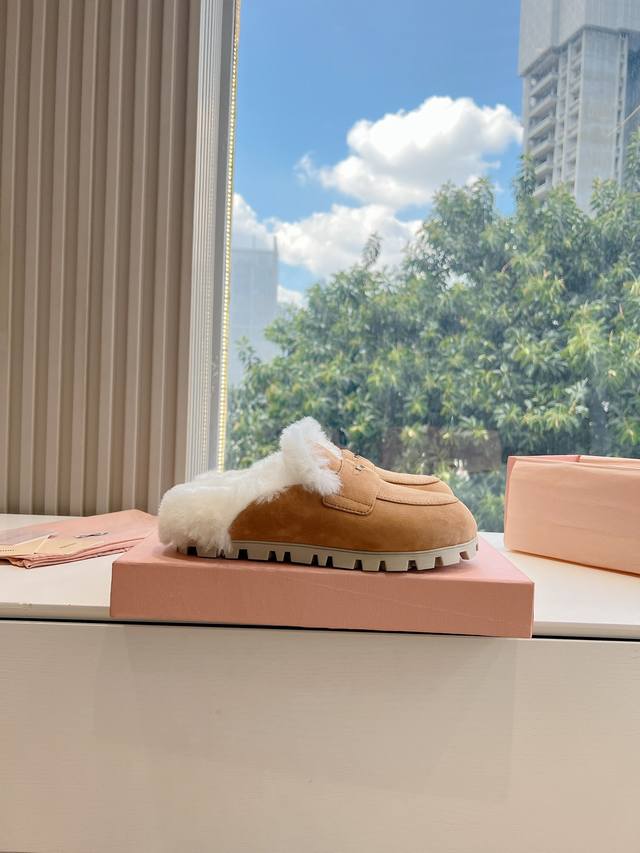 压印logog024现货供应miumiu*缪缪厚底 年新款英伦风包头毛拖 怎么穿都好看今夏时髦精最爱 看起来不怎么舒服 上脚超级舒服 面料:磨砂鹿皮 内里:牛皮