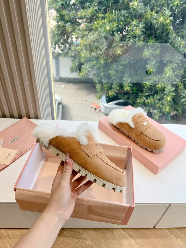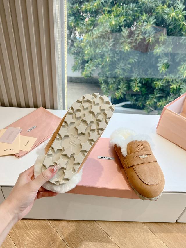 / 压印logog024现货供应miumiu*缪缪厚底 年新款英伦风包头毛拖 怎么穿都好看今夏时髦精最爱 看起来不怎么舒服 上脚超级舒服 面料:磨砂鹿皮 内里:牛皮