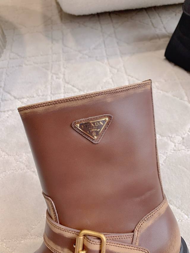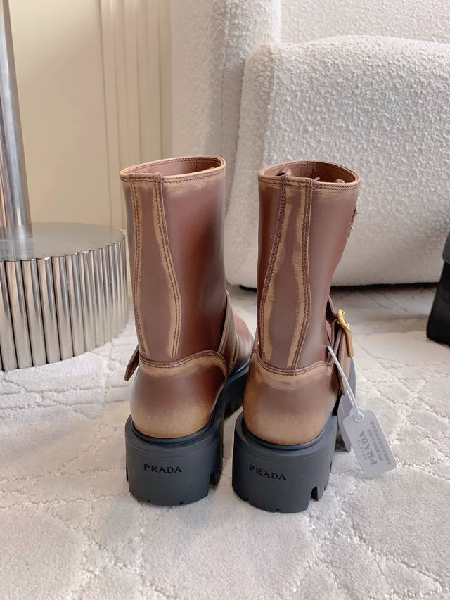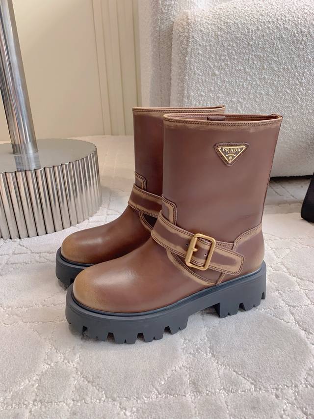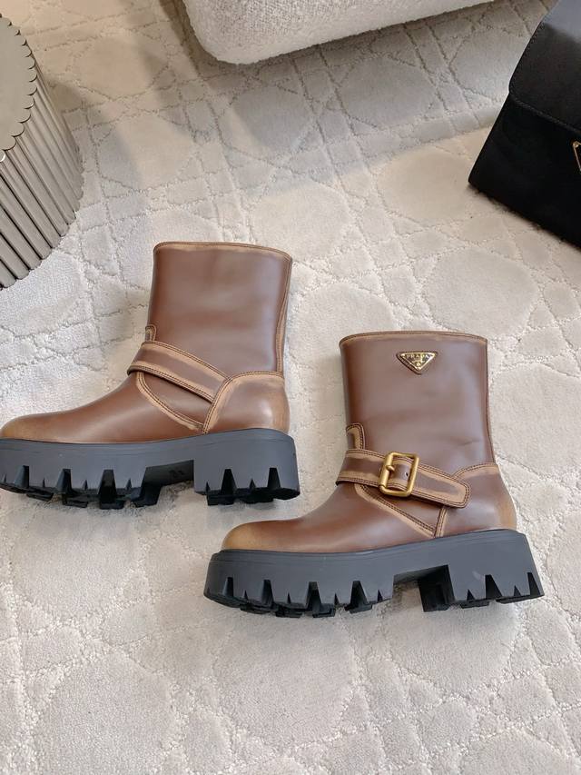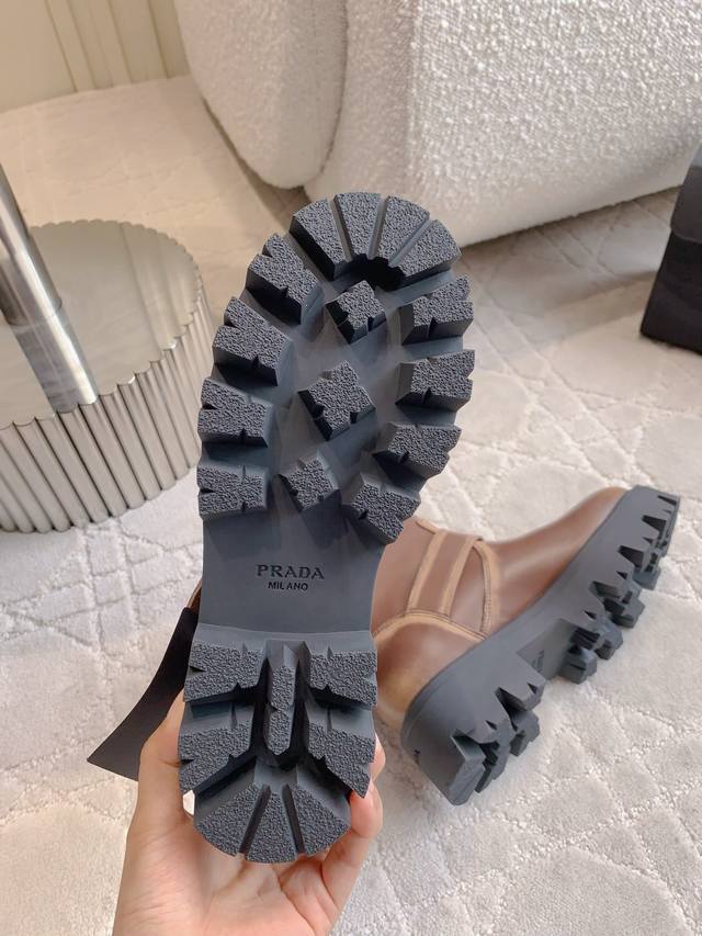 prad*新款三角标厚底短靴 经典三角标装饰 鞋型流畅帅气 超好穿 上脚简直酷炸了 万年百搭靴