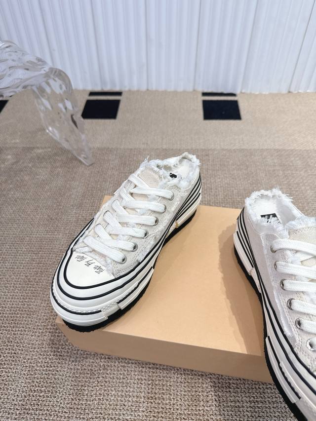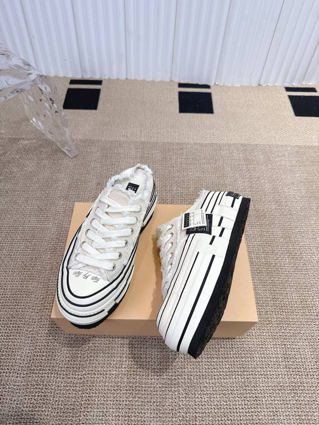 吴建豪Xvessel硫化双标内增高松糕帆布鞋半拖鞋