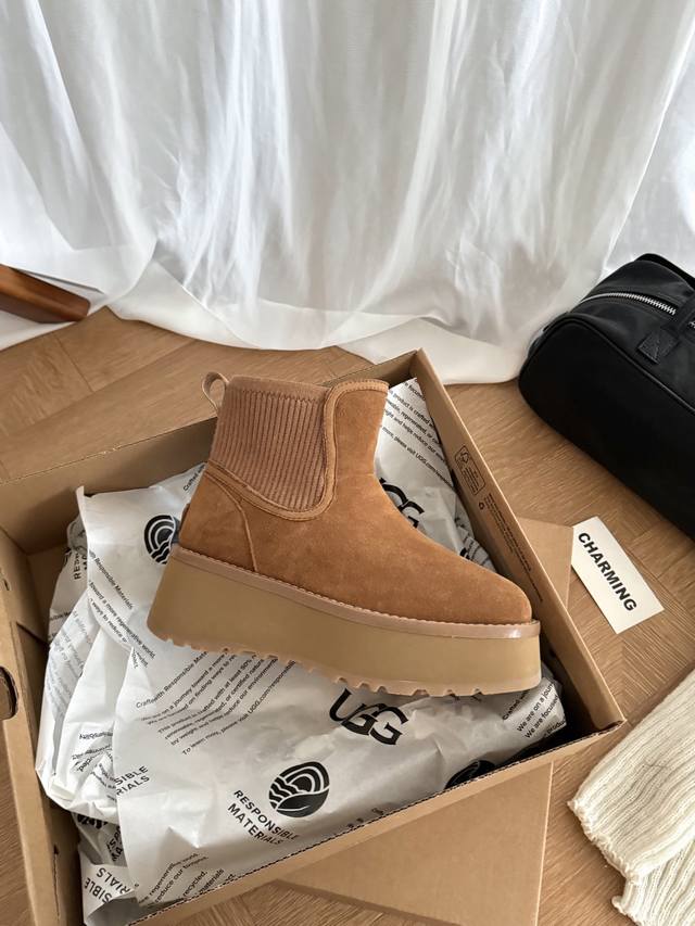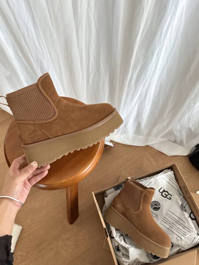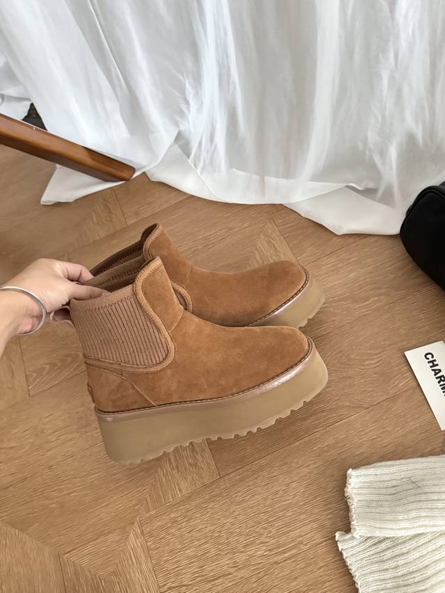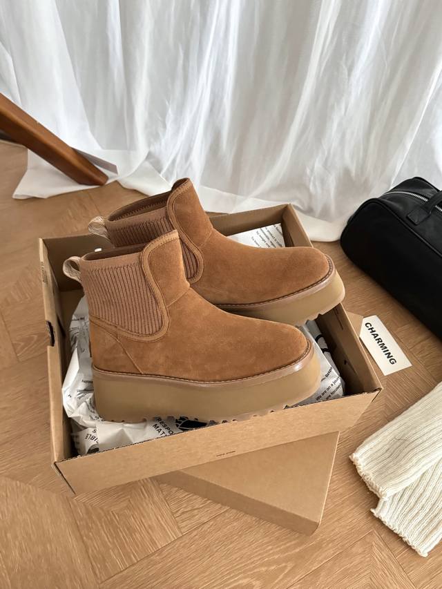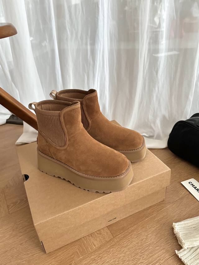 城市方可切尔西靴 栗色 芥菜籽色 防泼水翻毛皮 螺纹针织鞋面 织物里衬 鞋垫采用薄荷防臭处理 约14Cm靴筒、鞋跟高度约5Cm Size:35 40