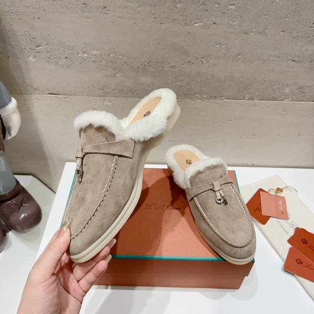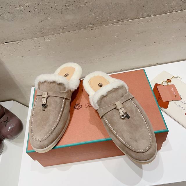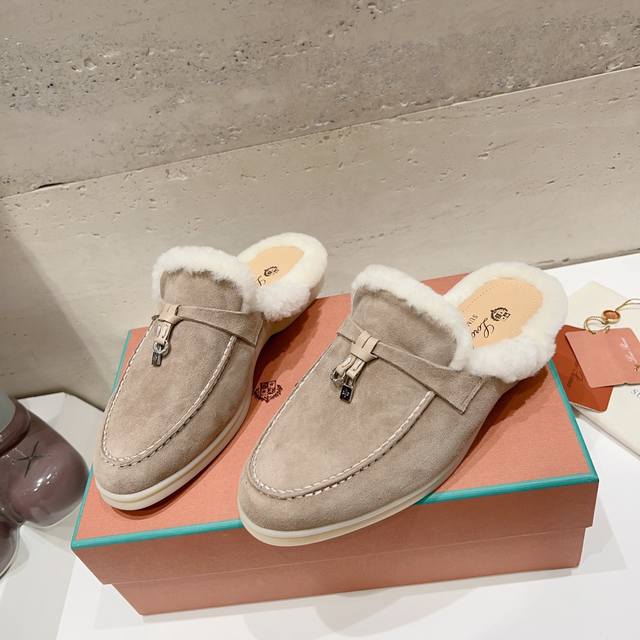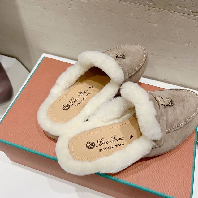 女 男40Loro Pian*经典爆款lp顶级版本 英伦流苏平底毛毛乐福鞋