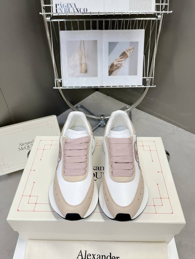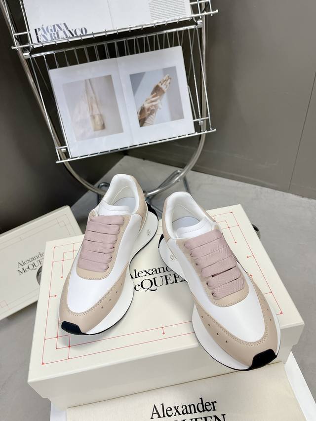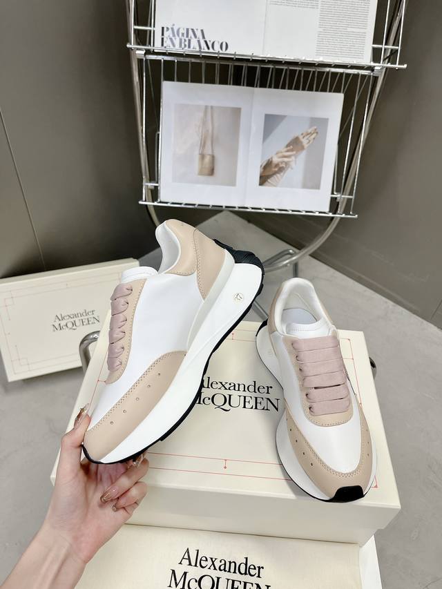 官网同步Alexander Mcqueen 亚历山大麦昆 春夏男Sprint运动情侣鞋 鞋侧面饰有时尚个性字母Seal Logo组合雕花标志 内里网 牛皮垫脚,,最新精美全套包装 另配有一幅鞋带 35-45