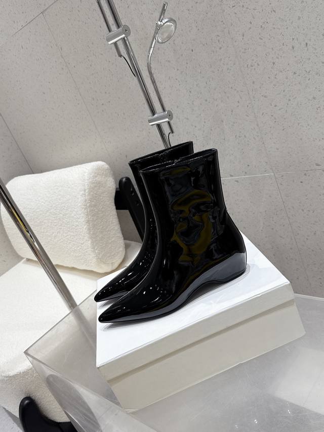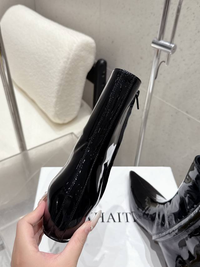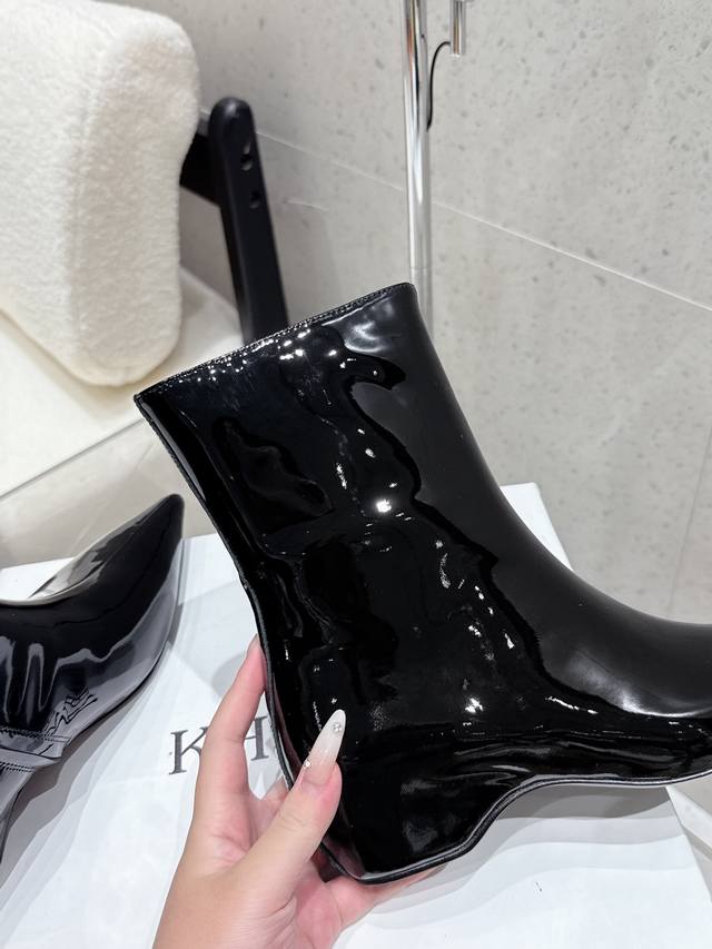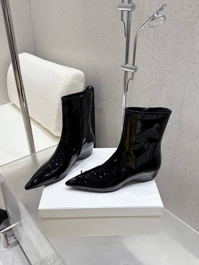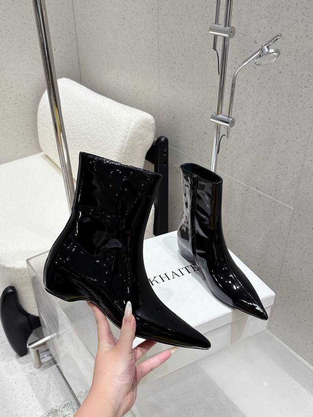 小众潮牌Khaite25Ss早秋新款复古坡跟短靴尖头内增高侧拉链短靴!绝美裸靴!时髦极小尖头搭配坡跟内增高的设计 潇洒百搭而且脚感很稳。鞋型纤细又时髦,微微的堆积感超显腿细 女神的百搭瘦腿靴,轻松穿出时尚大长腿!