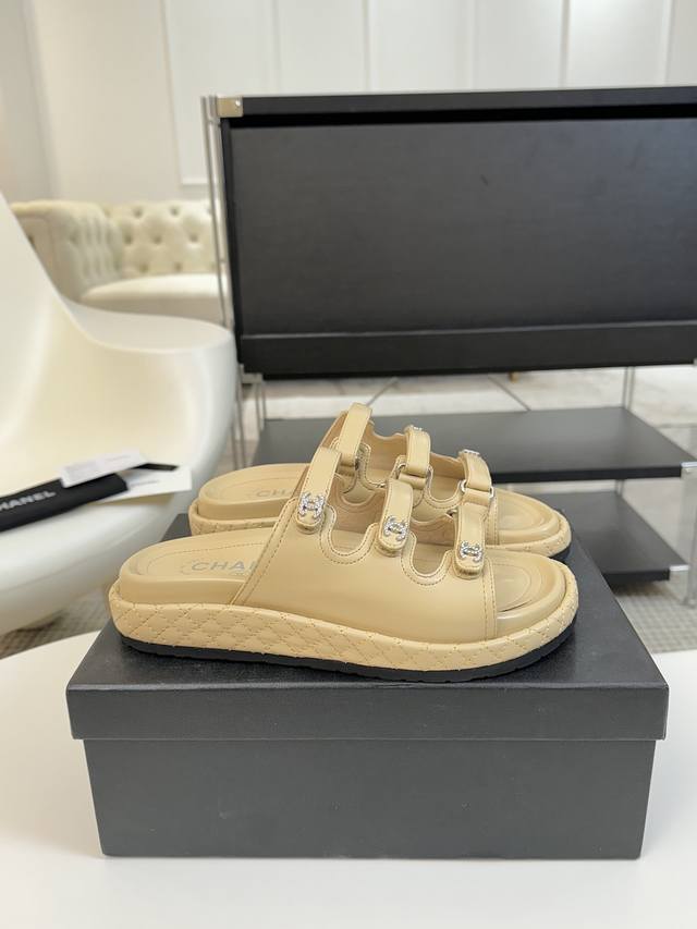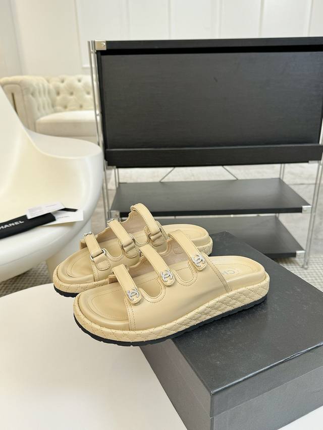 小香夏季新款 专柜同步五金logo沙滩拖鞋系列!整个鞋子选用专柜同步特定材料,鞋面采用羊皮