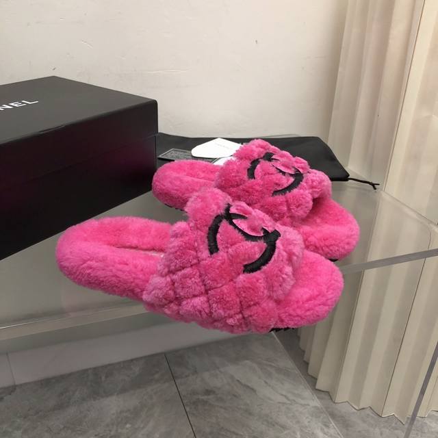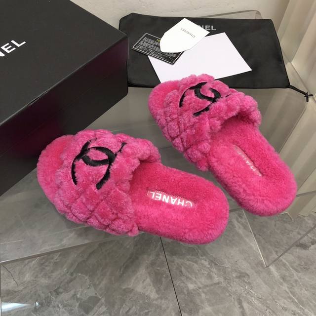 小香 2025秋冬新品 名媛风羊毛拖系列上新这系列的色彩实在太美了 气质休闲范 美到无话可说 绝对百搭的一款 简单大气 秋冬必备! T 鞋面:原版菱格刺绣拼接小香标内里:进口羊羔毛 大底:原版开模防滑大底专柜原版全套包装鞋码: 35-39 40、41定制不退换