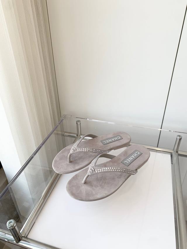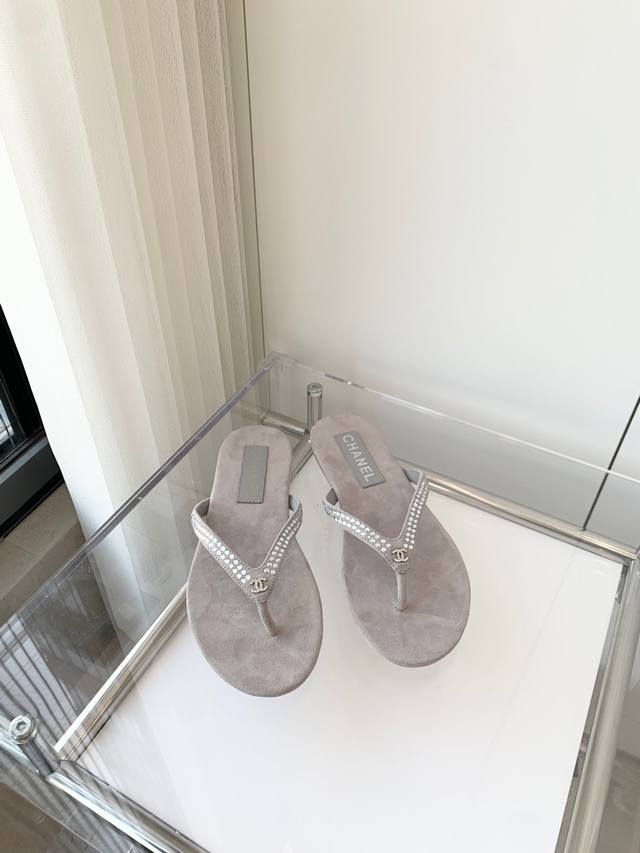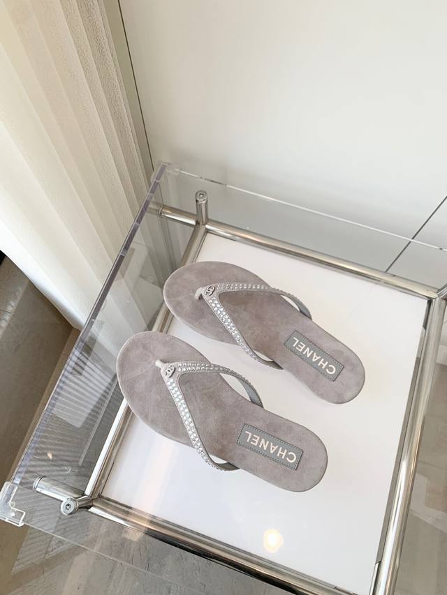 小香2025春季新品~~~小香人字拖鞋!同原版1:1复制!非市场普通版本面料:麂皮内里:羊皮跟高:1Cm码数:35-39 40定做不退换