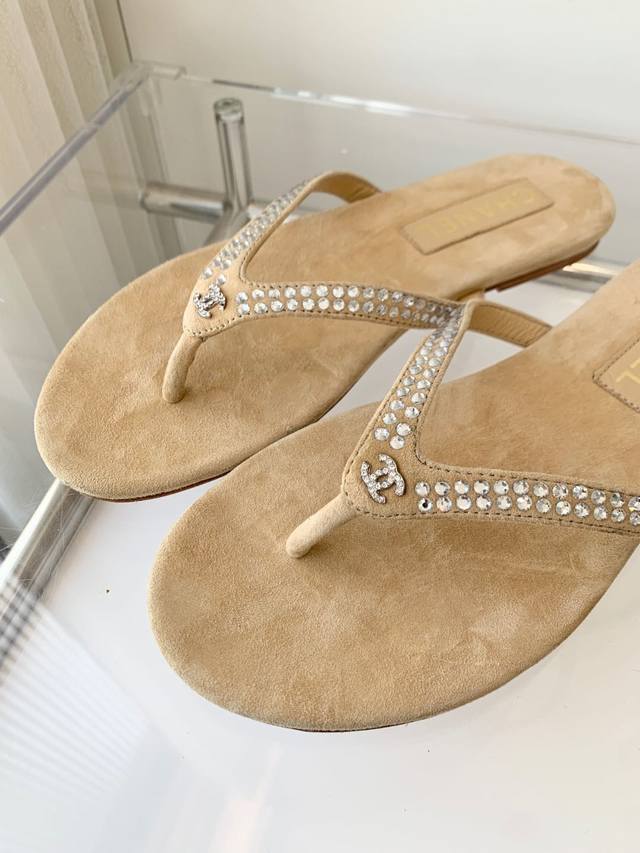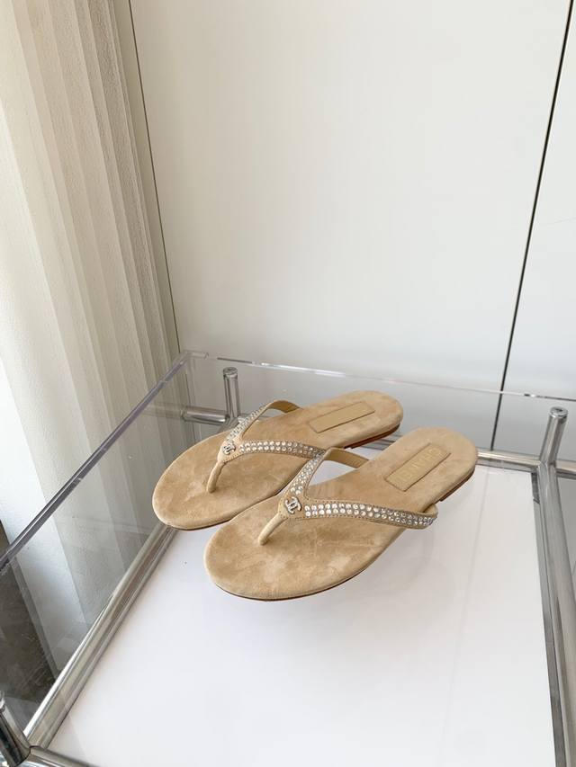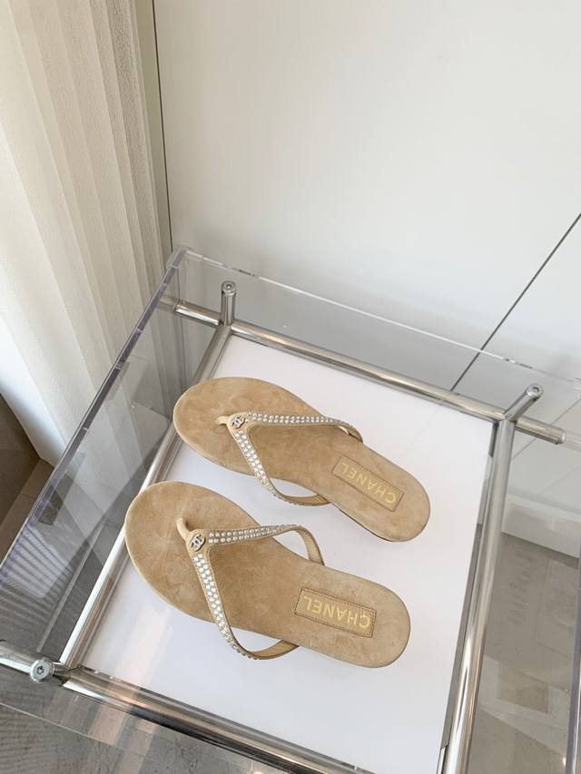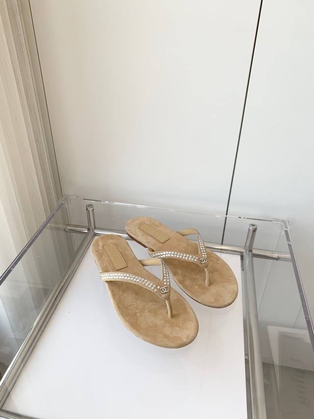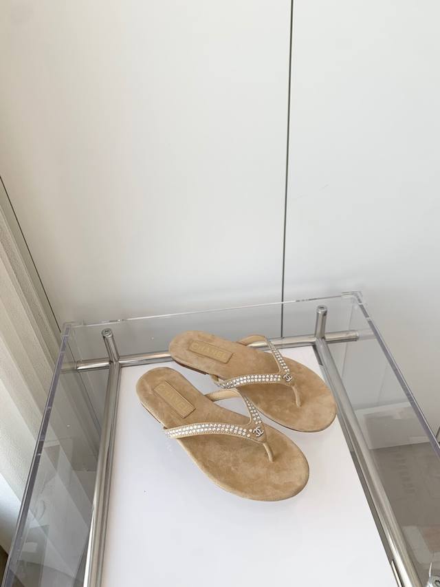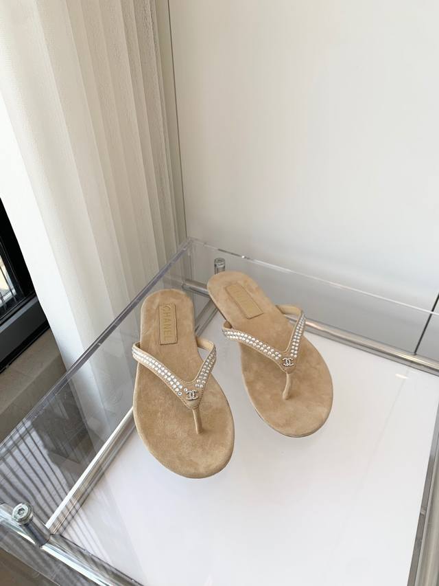 小香2025春季新品~~~小香人字拖鞋!同原版1:1复制!非市场普通版本面料:麂皮内里:羊皮跟高:1Cm码数:35-39 40定做不退换